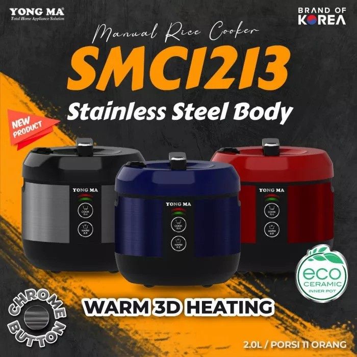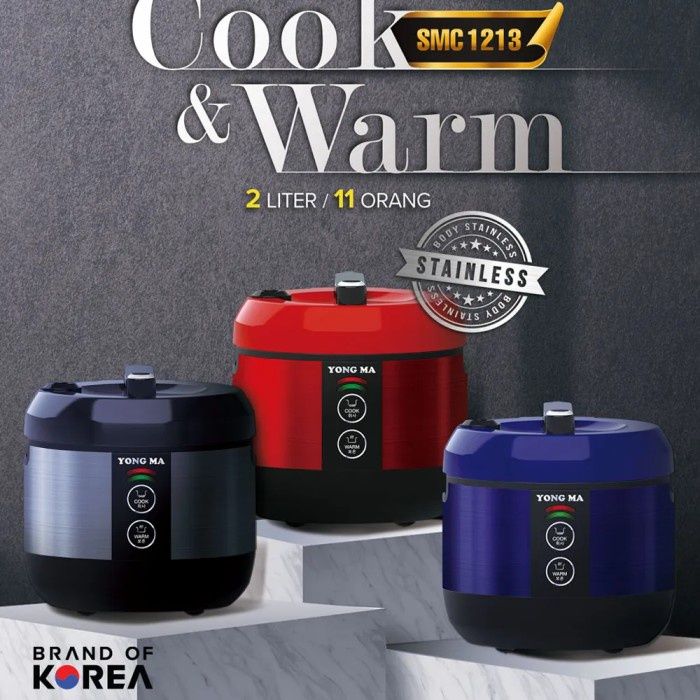 YONG MA Rice Cooker/Magic Com/Penanak Nasi 3 In 1 Anti Lengket SMC/1213 Kapasitas 2 Liter/2L