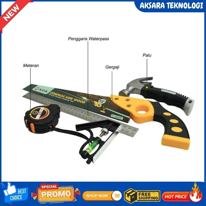 Paket Set Tukang Kayu NEW PAKET TUKANG Gergaji kayu baja Palu kambing siku waterpas meteran viper Paket Tukang
