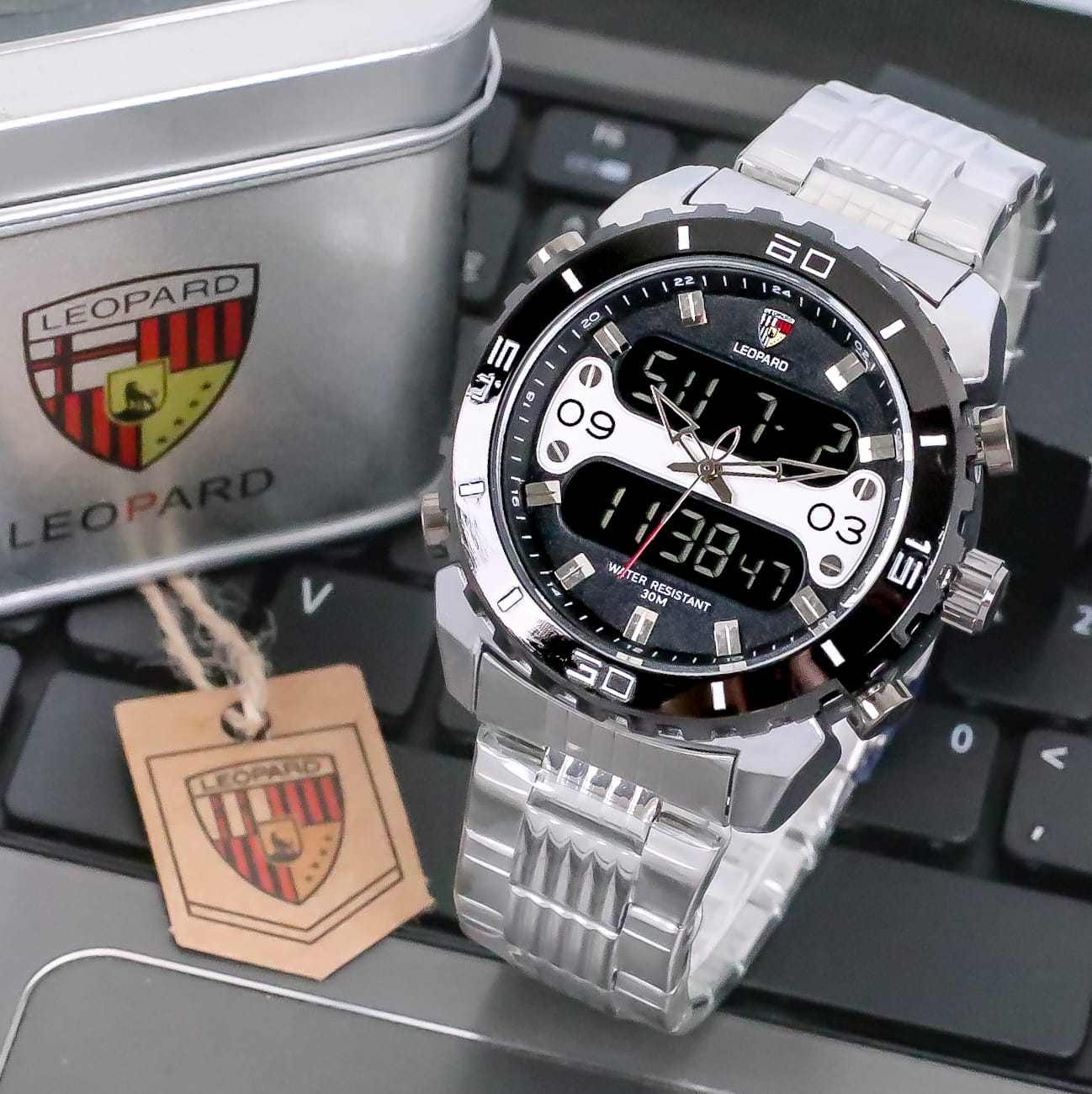 FREE ONGKIR - Jam Tangan Pria Original LEOPARD L91407S Dualtime ( Analog & Digital ) Tali Rantai Free Box Original