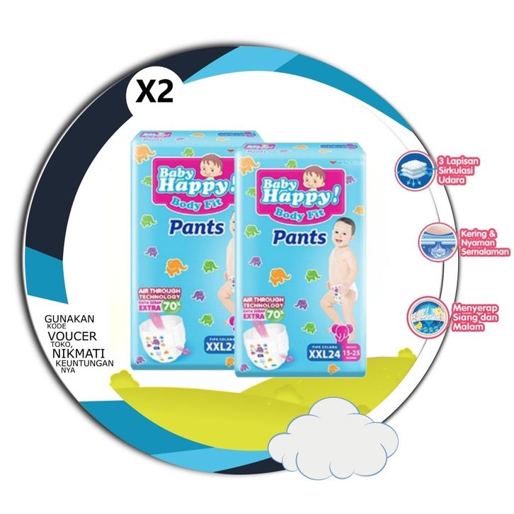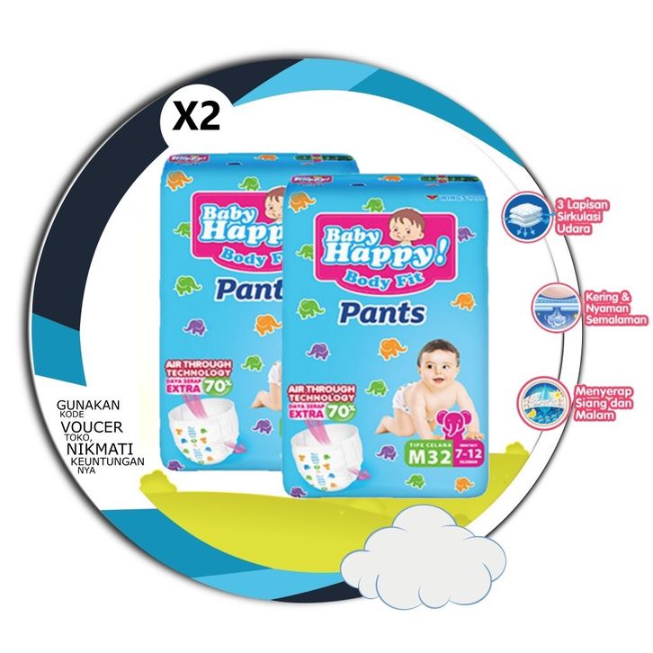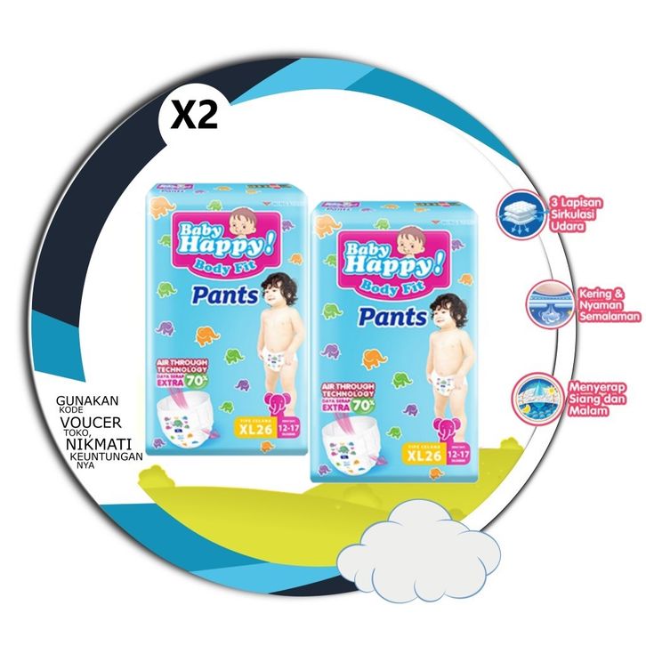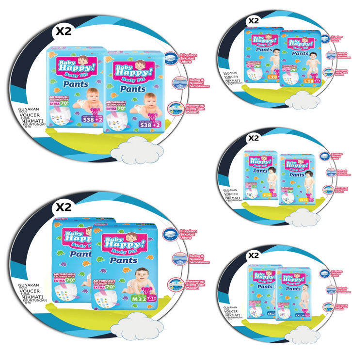 Paket 2 Ball Baby Happy Pants S38+2 / M 32 / L 28 / XL 26 / XXL 24 - Popok Bayi Celana Sekali Pakai