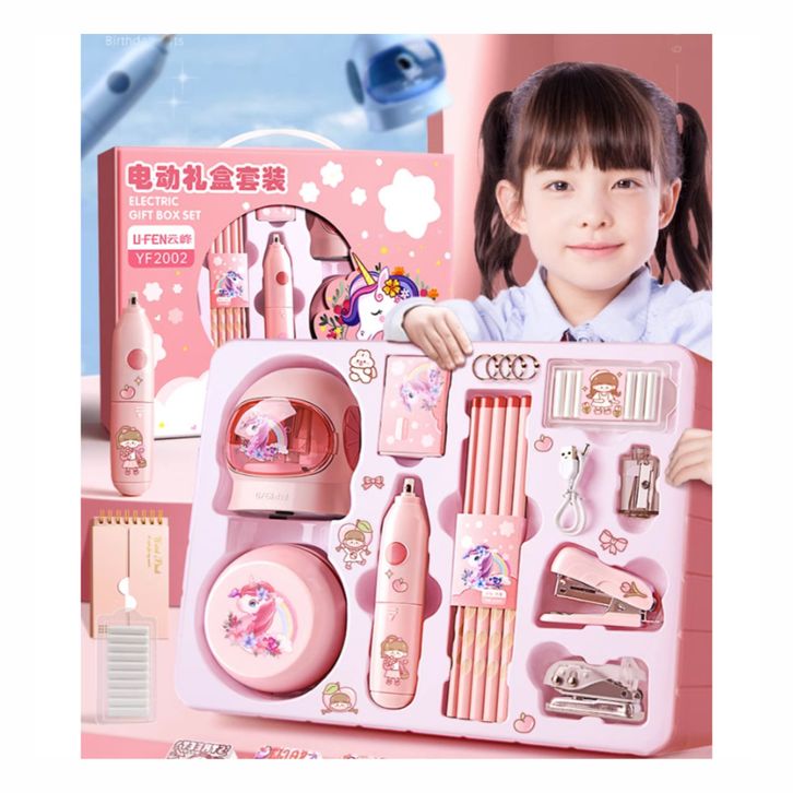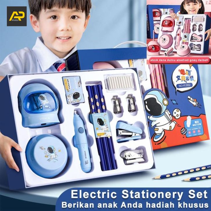 Electric Stationery Set / Set Alat Tulis Elektrik Fortable Rautan Penghapus Vacuum Pensil 11 In 1