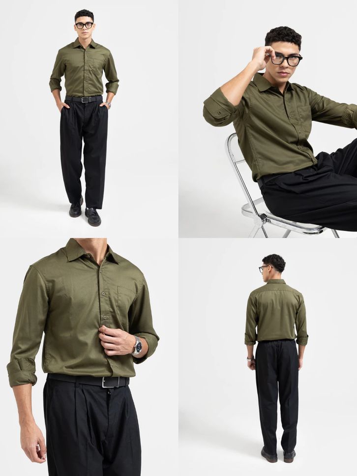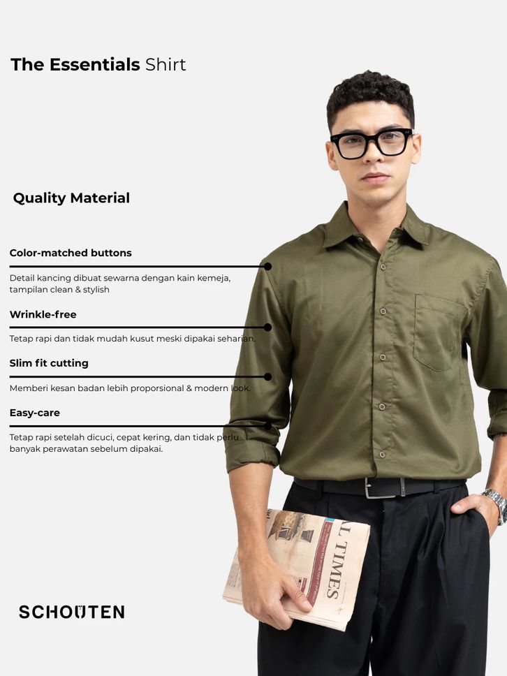 Kemeja Pria Dewasa Slim Fit/The Essentials Shirt Lengan Panjang Katun