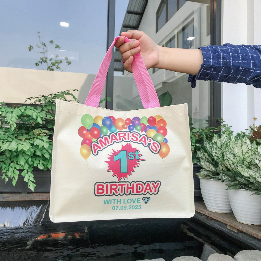 ( 60pcs ) Custom Tas Premium Poliyester Landscape Print Bukan Sablon pegangan kulit Tas Ulang Tahun Souvenir Ham - JAWA