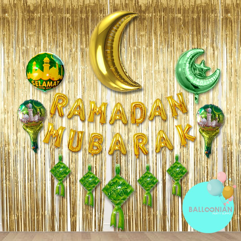 RAMADHAN MUBARAK GOlLD DEKORASI SET/BALON FOIL IDUL FITRI/BALON LEBARAN/RAMADAN MUBARAK