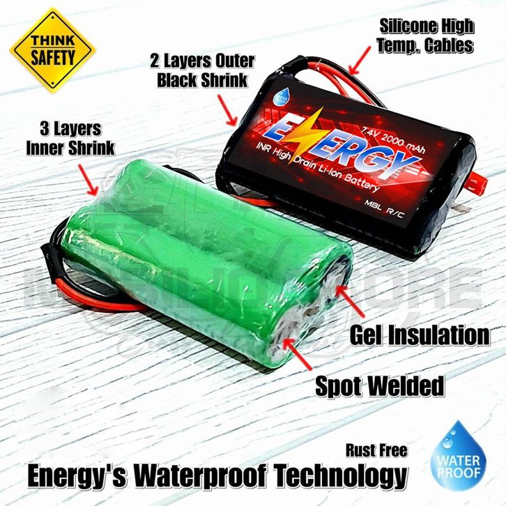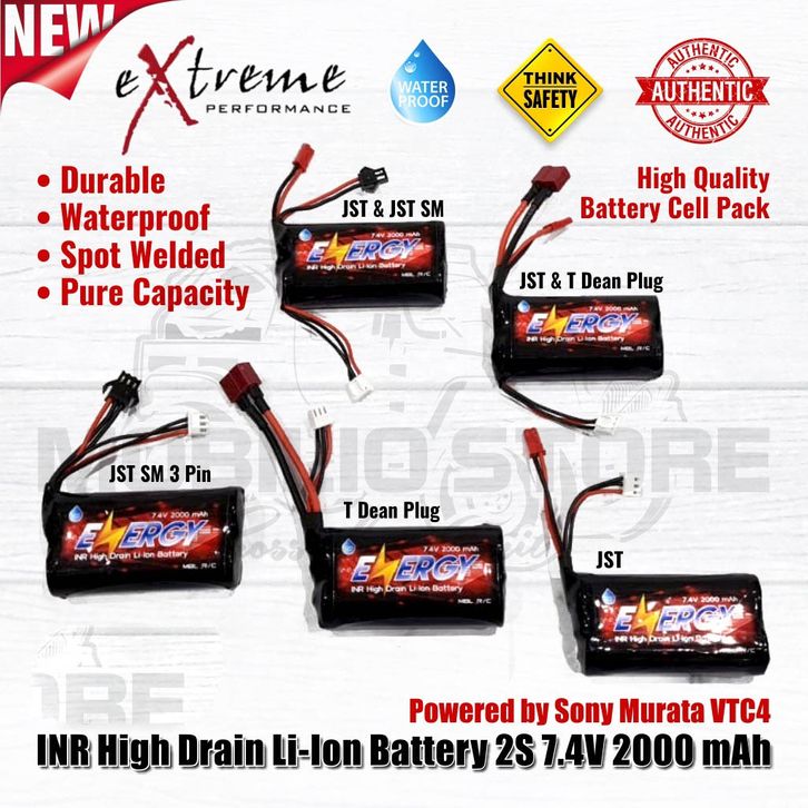 BATERAI RC INR LI ION 7.4 VOLT 2000 MAH HIGH DRAIN RC MINI BATTERY