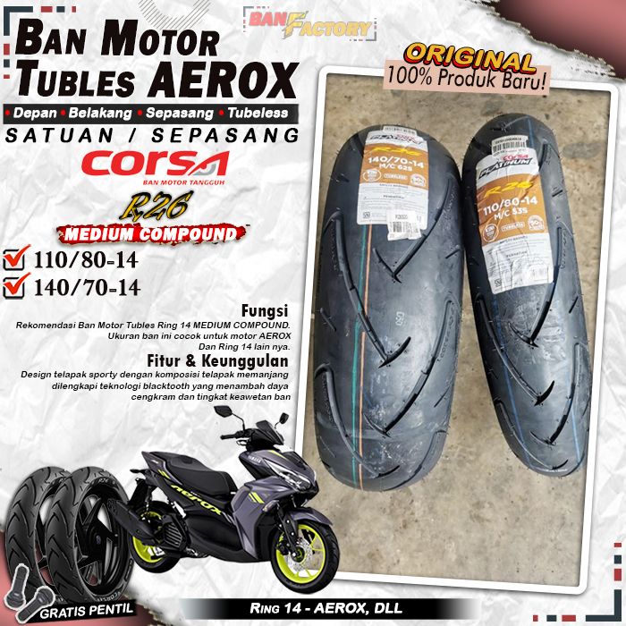 Ban Motor CORSA R26 PLATINUM Ring 14 AEROX Tubeless Ban Tubles depan belakang Motor Matic AEROX Ring 14