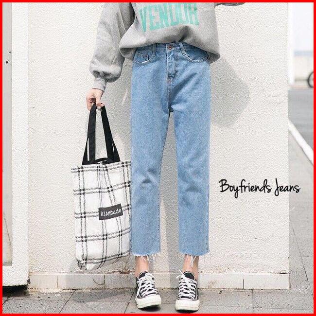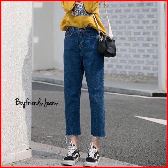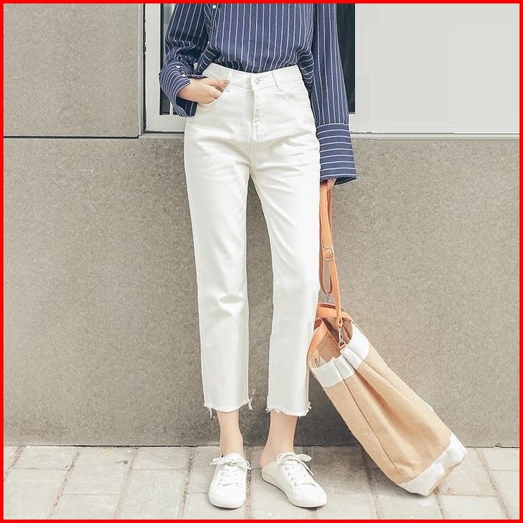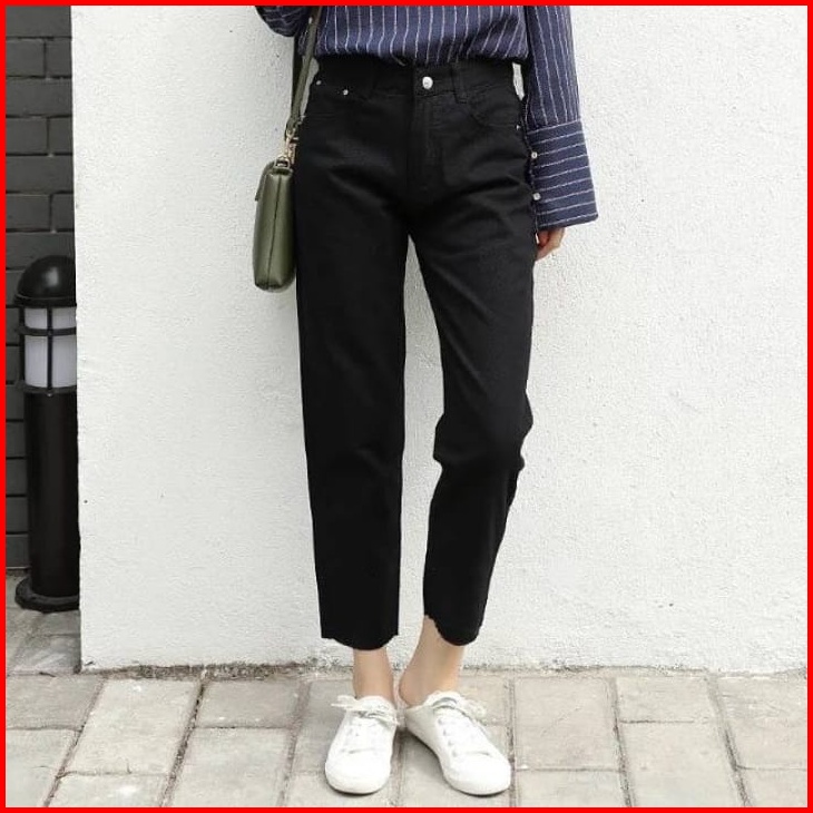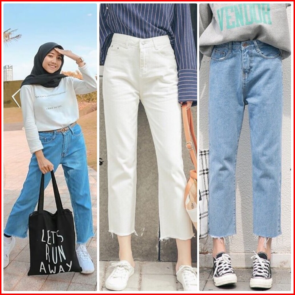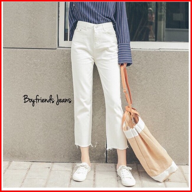 Bf Hw Unfinished Non Stretch Jeans Wanita One Slice Hipster Cut Knee Murah Kekinian Putih Hitam