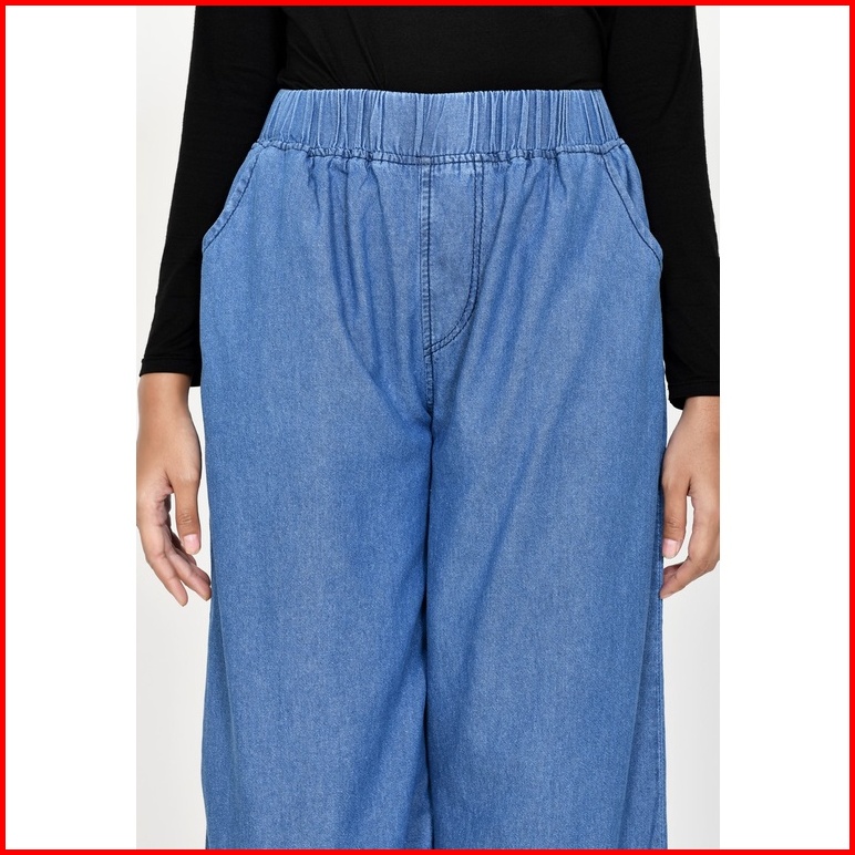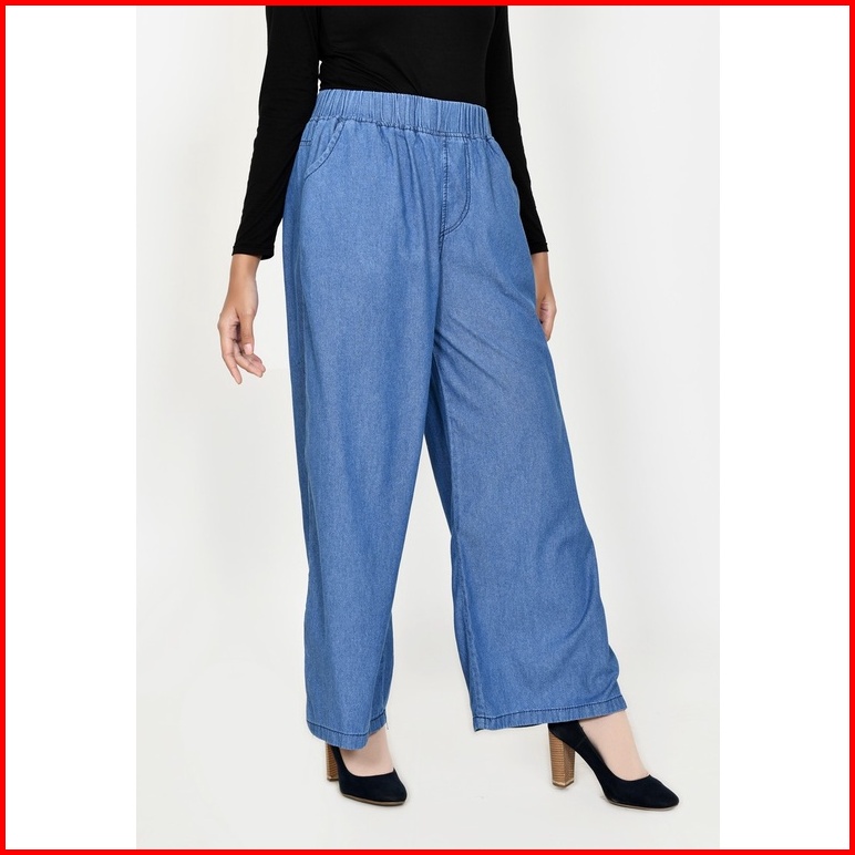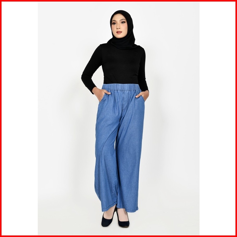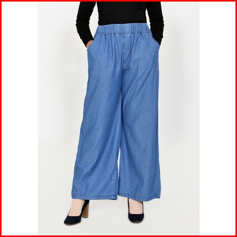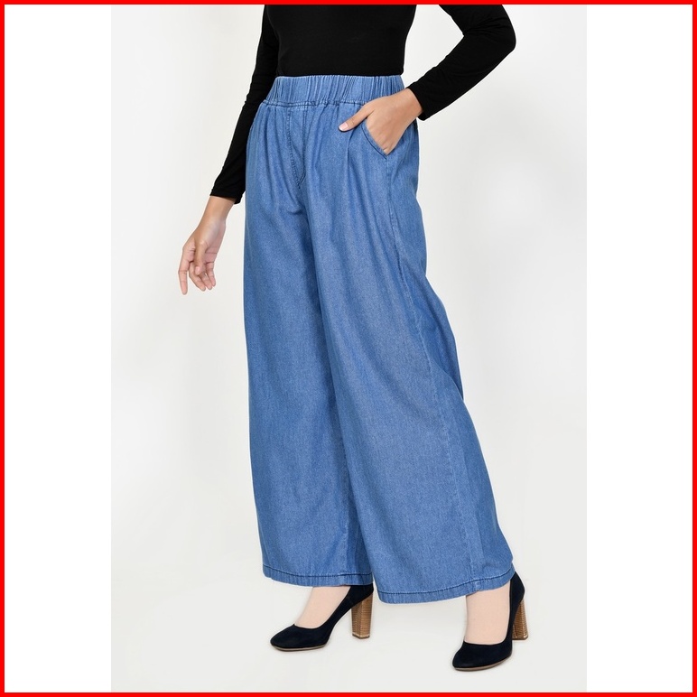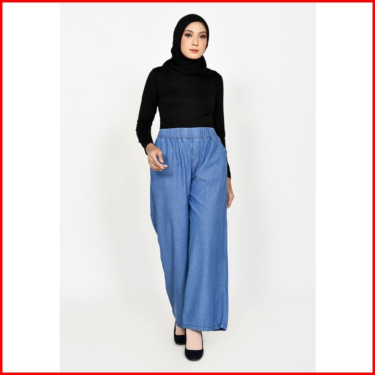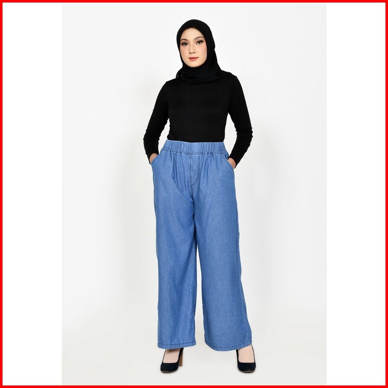 Celana Kulot Jeans Non Stretch Wanita Fit Xxl Jumbo Panjang 102 Cm Lezahra Signature Pallazo Kelly 2