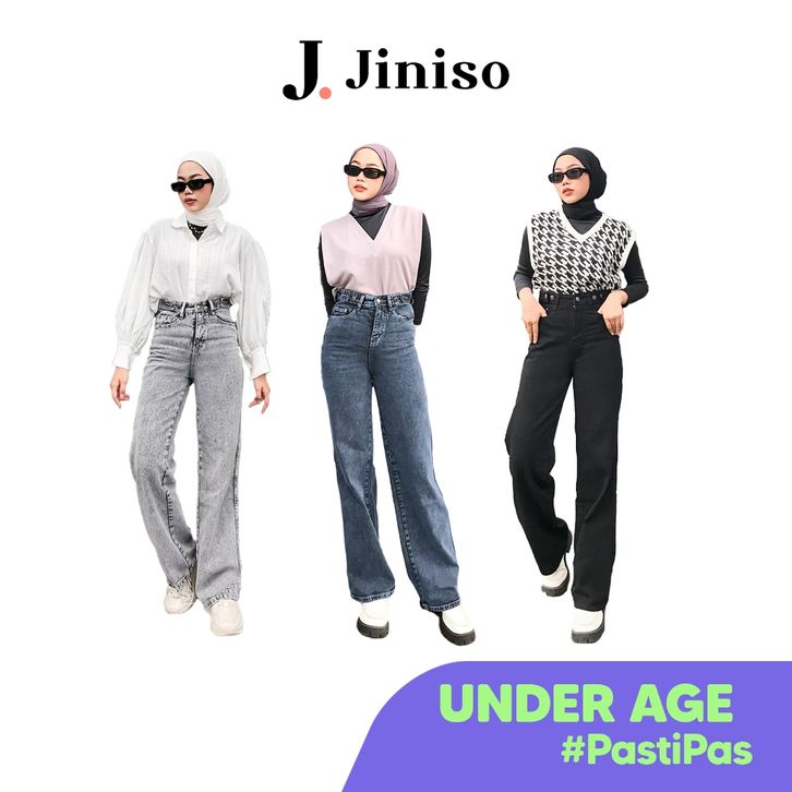 JINISO - HIGHWAIST ADJUSTABLE BAGGY UNDER AGE JEANS - CELANA WANITA KEKINIAN - JINISO OFFICIAL - JINISO ORIGINAL