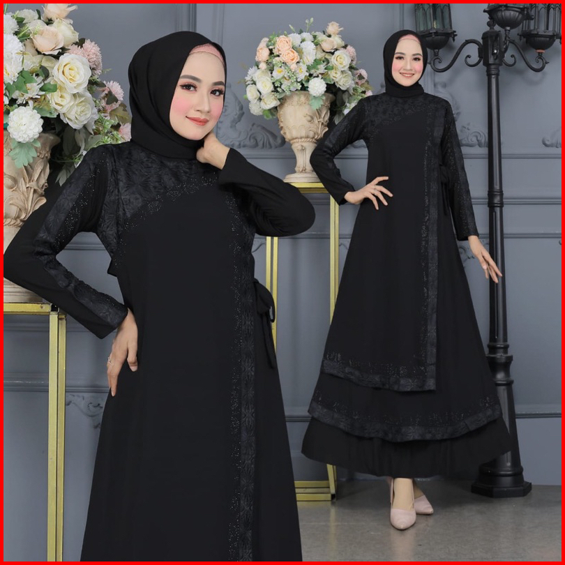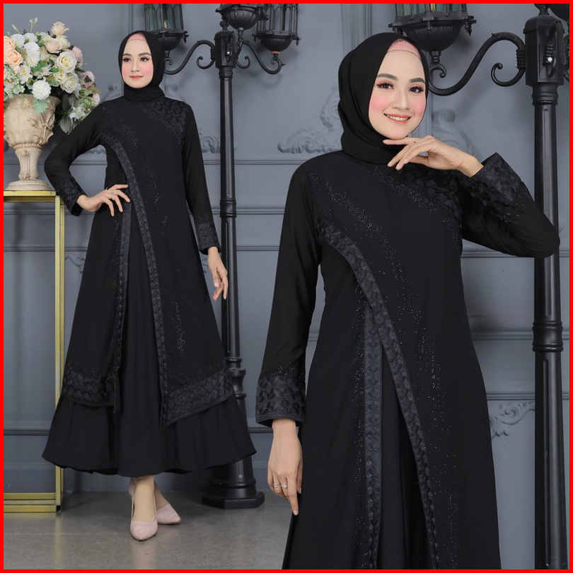 Gamis Abaya Turkey Bordir Belah Samping Full Hitam Mewah Terlaris Divvsaa.collection