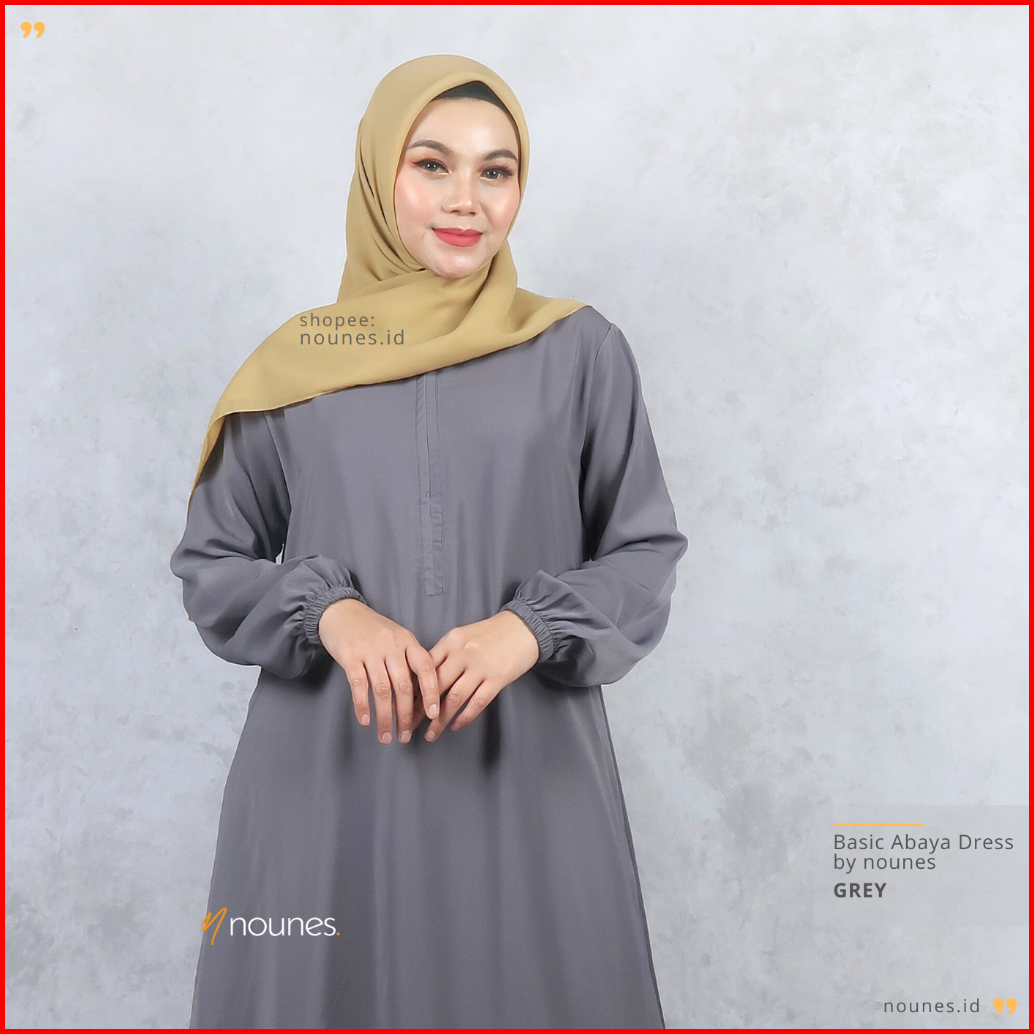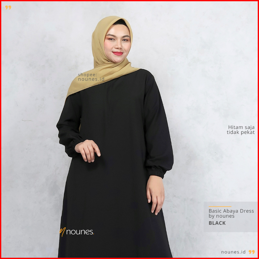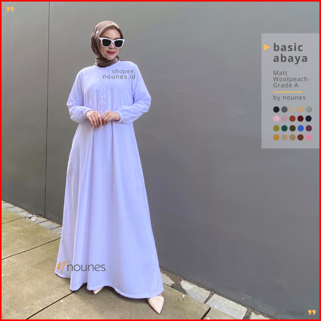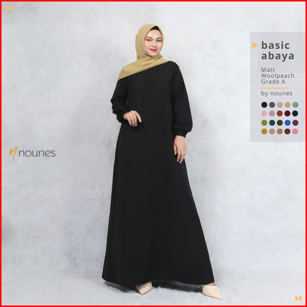 Nounes Basic Abaya Dress Gamis Daily Polos Wanita Saku Kanan Matt Woolpeach Grade A