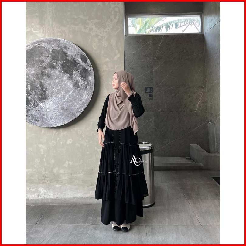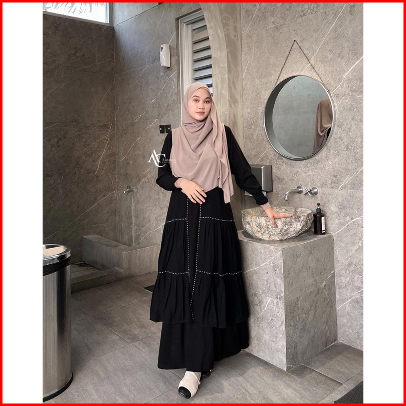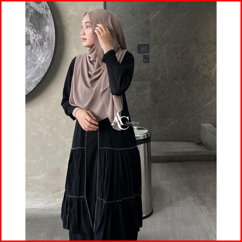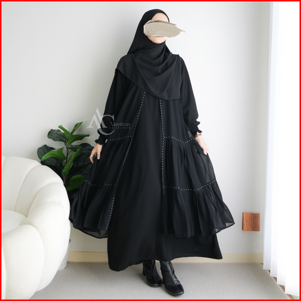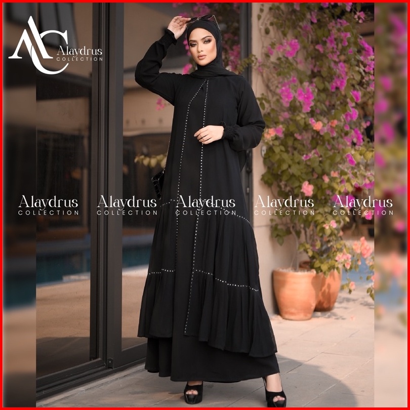 Alaydrus Collection Abaya Hitam Turkey Gamis Syari Bahan Jetblack Dan Chiffon Dress Arab Saudi 851