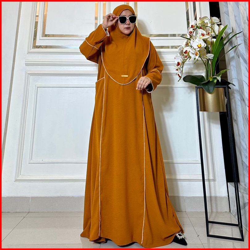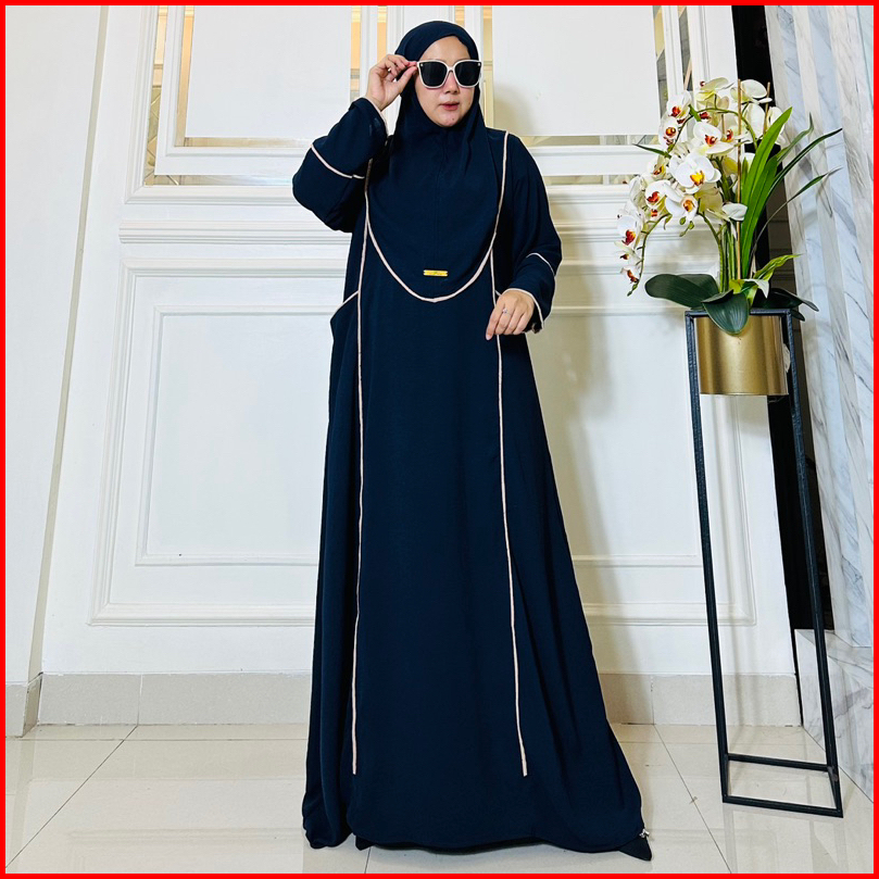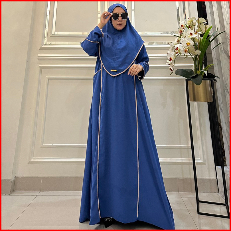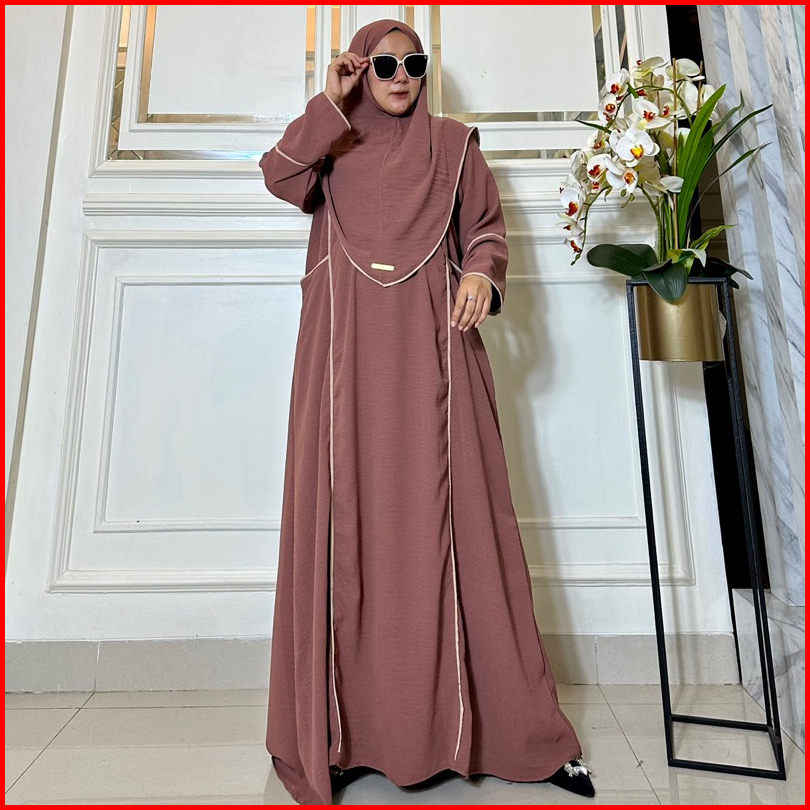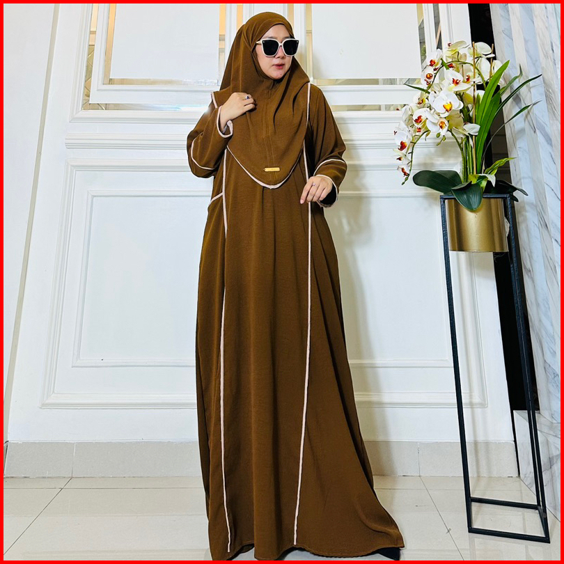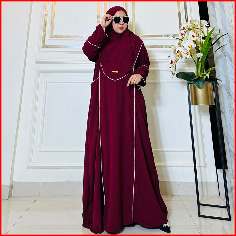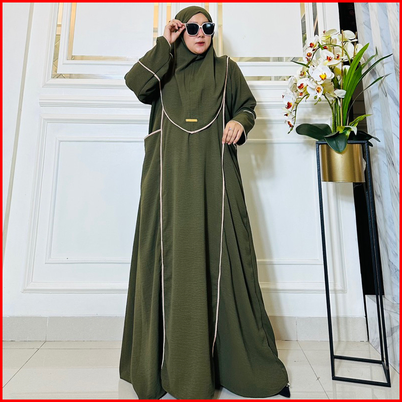 Maryam Set Khimar Bergo Bahan Crinkle Airflow Dress Gamis Abaya Wanita Busui Simple