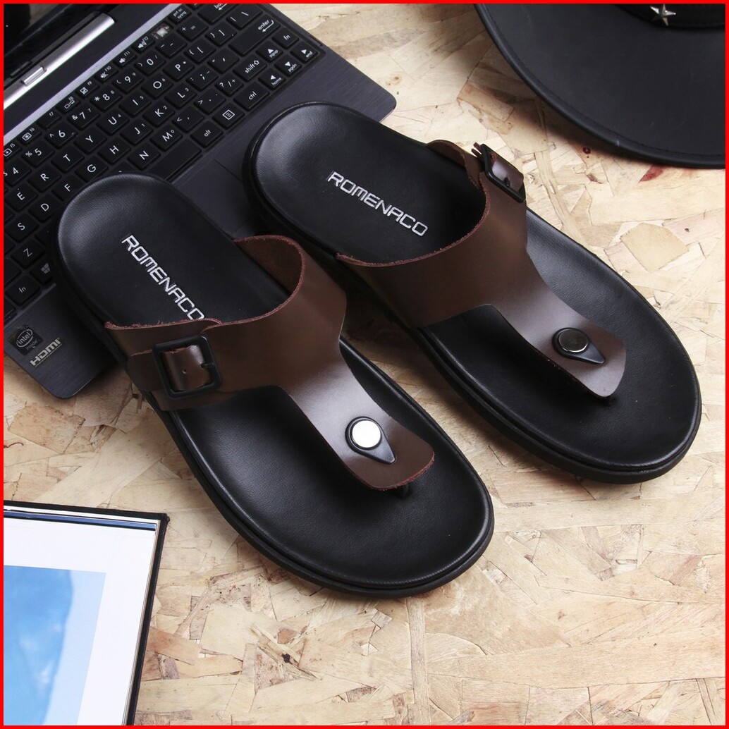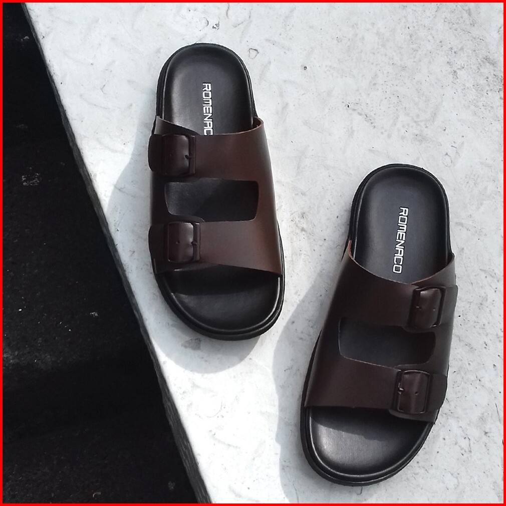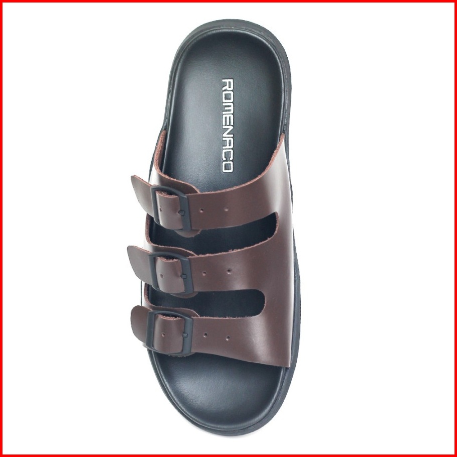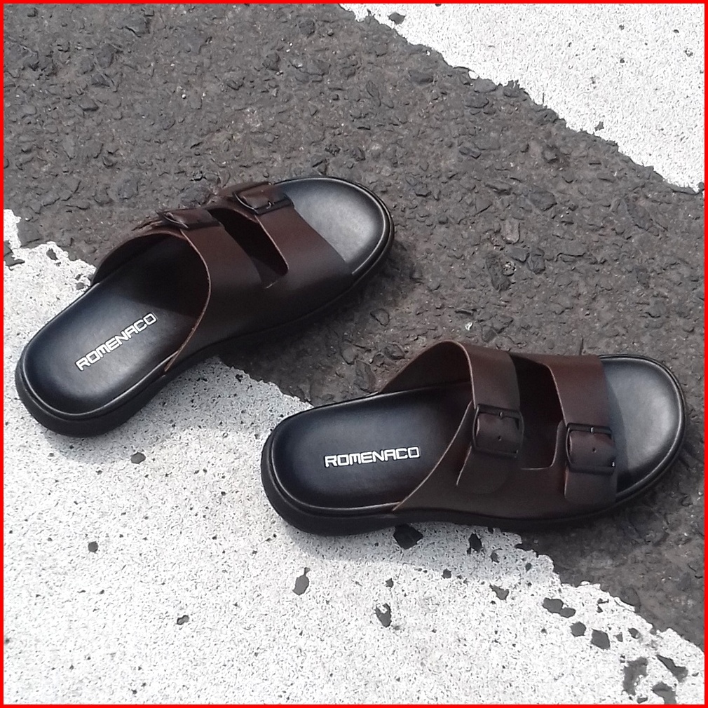 Sandal Pria Romenaco R002 Black Brown Upper Kulit Sapi Kolektif Asli