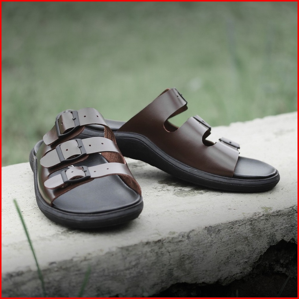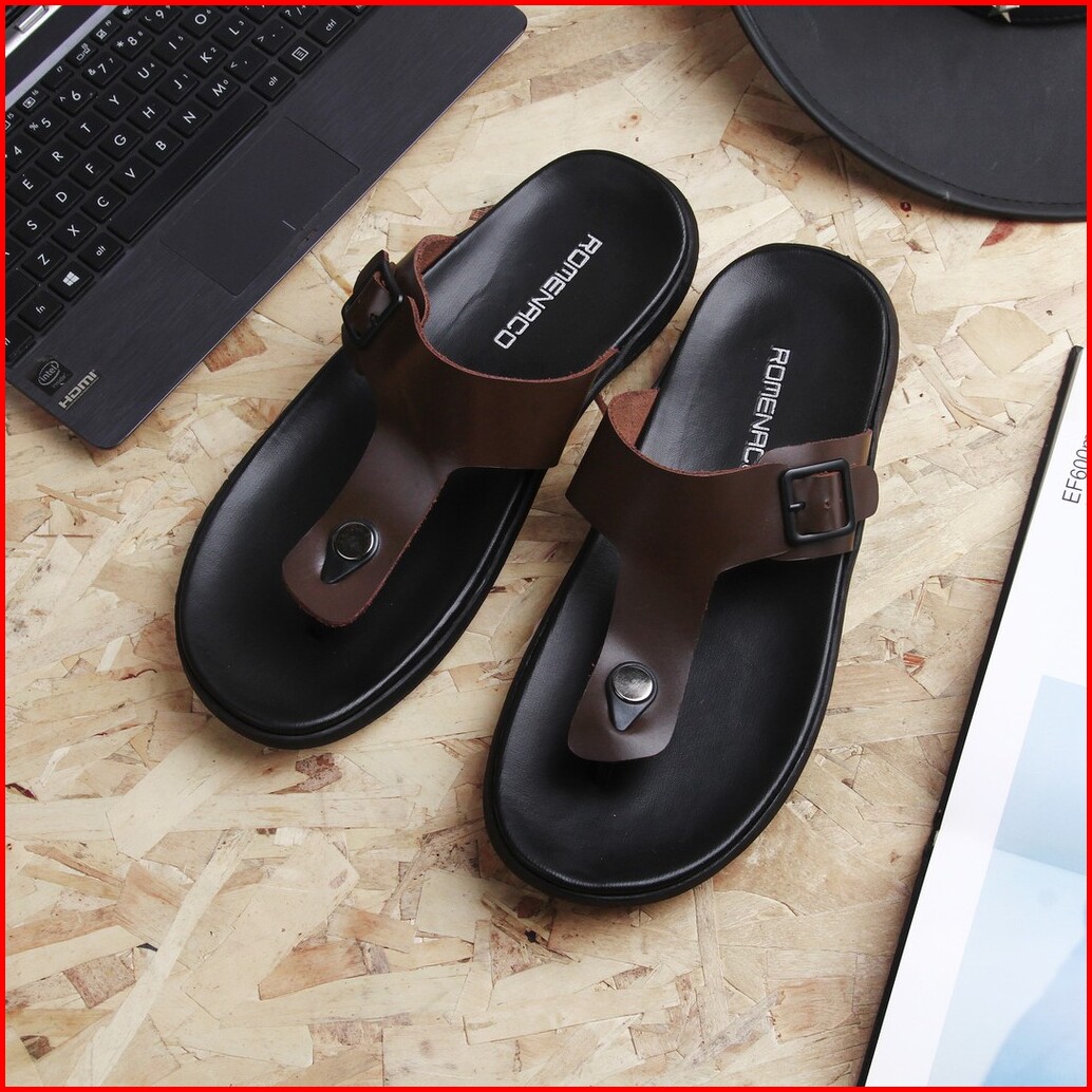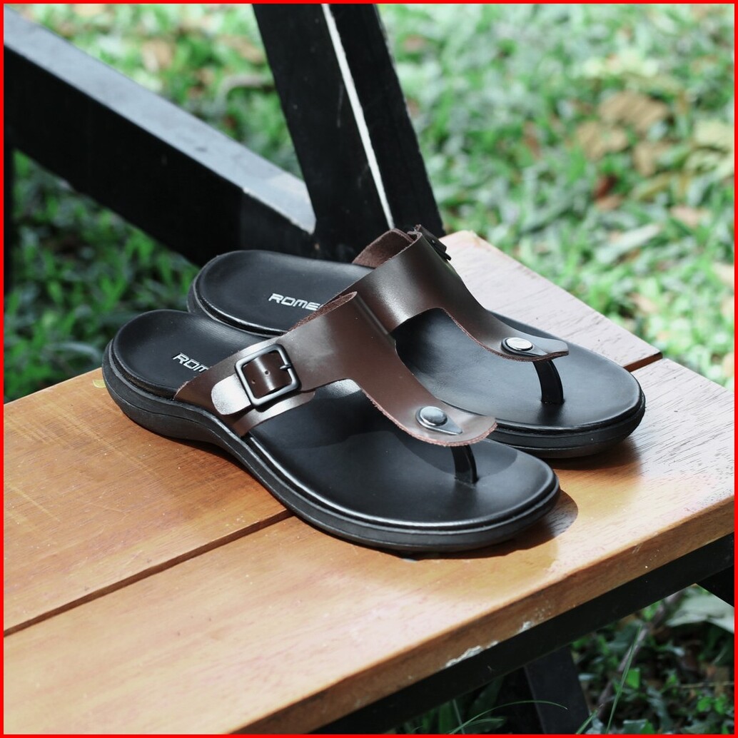 Sandal Pria Romenaco R002 Black Brown Upper Kulit Sapi Kolektif Asli