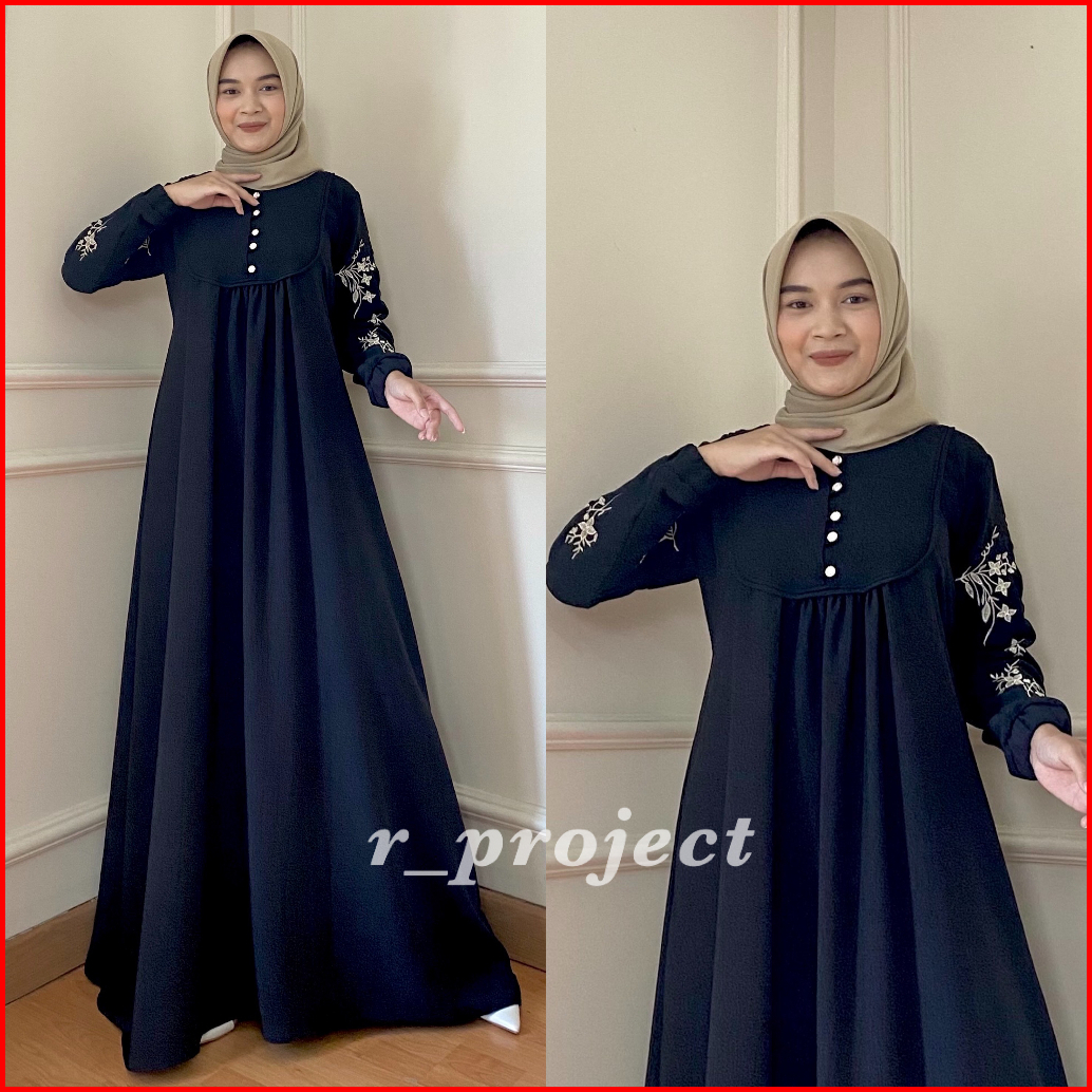 Gamis Bordir Jumbo Ld 140 130 120 110 Dst Cey Crinkel Airflow Premium Gamis Kondangan Dania Maxi