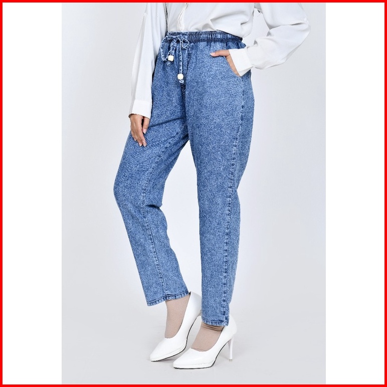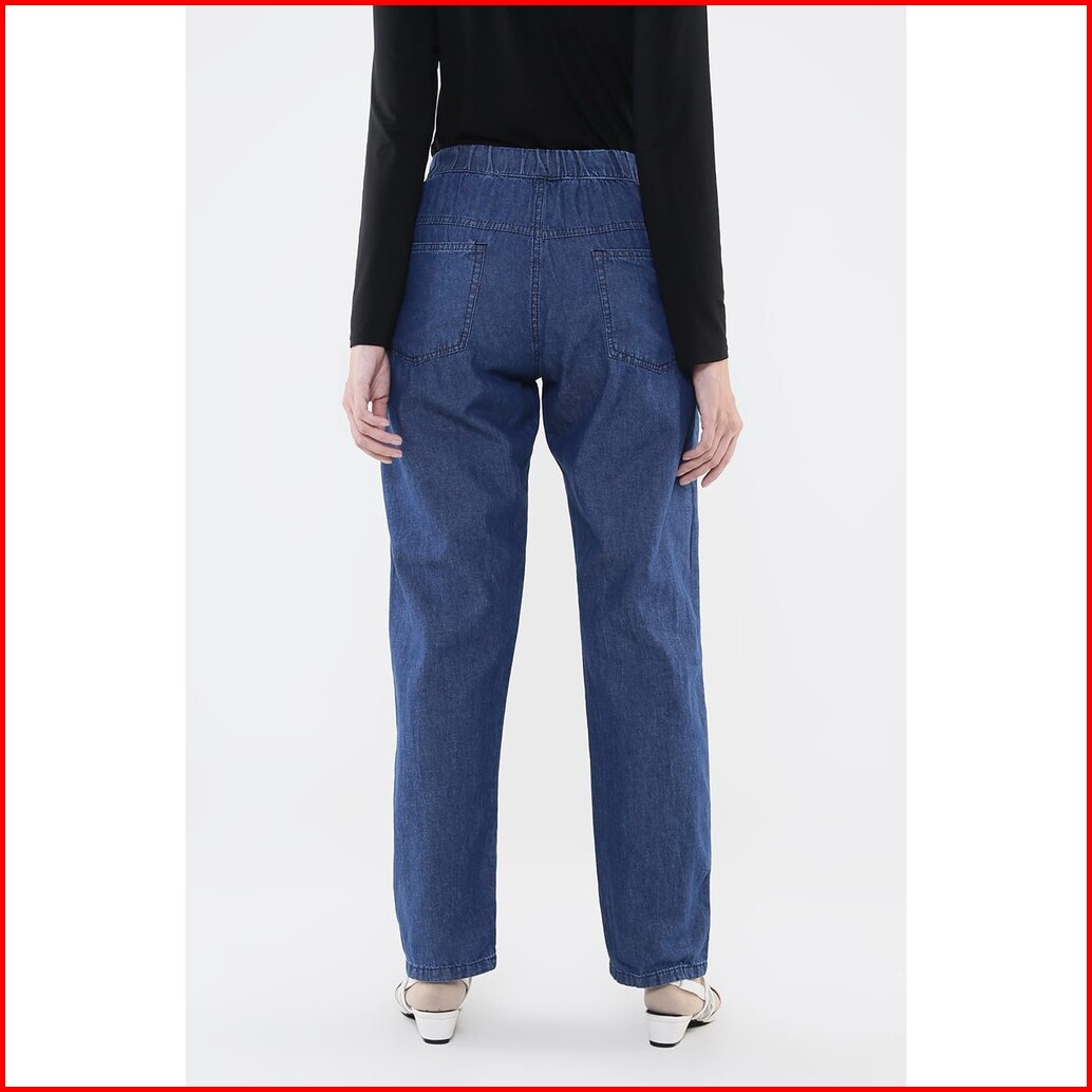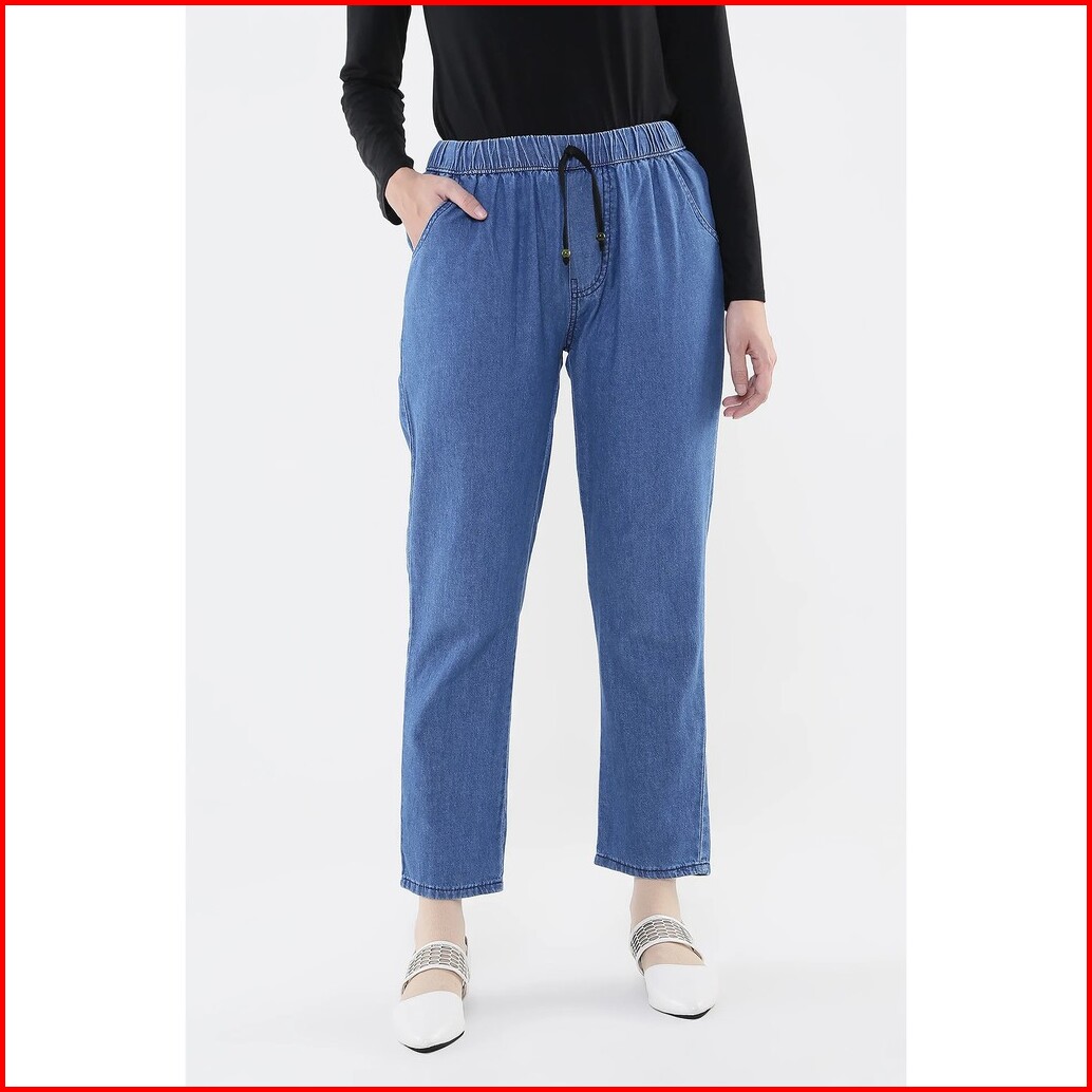 Longpant Denim Daily Lezahrasignature Bawahan Muslim Wanita Celana Baggy Basic Kaki Lurus Panjang 93cm Pinggang Karet Fi