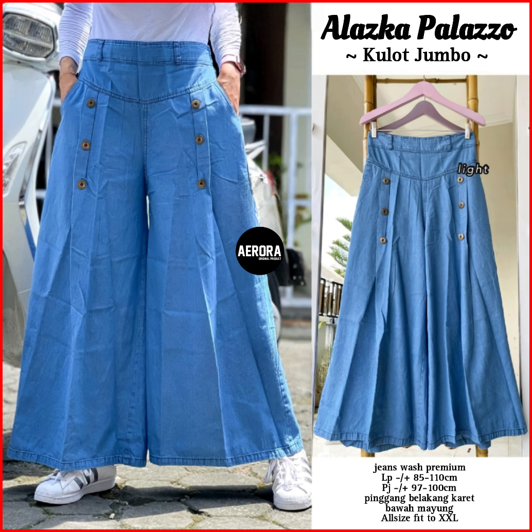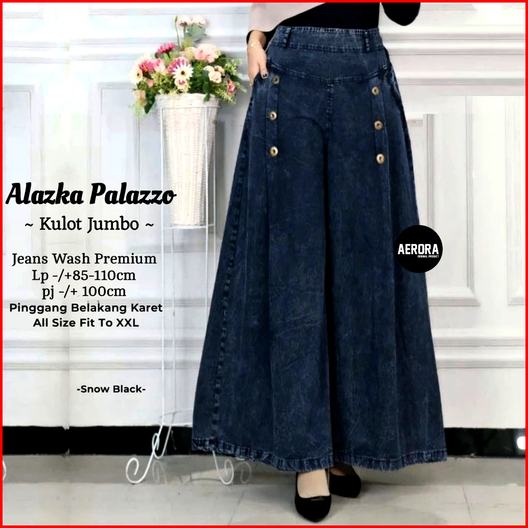 Aerora Alaska Celana Kulot Jeans Panjang Jins Jens Wanita Jumbo Hight Waist Payung Palazzo Kekinian
