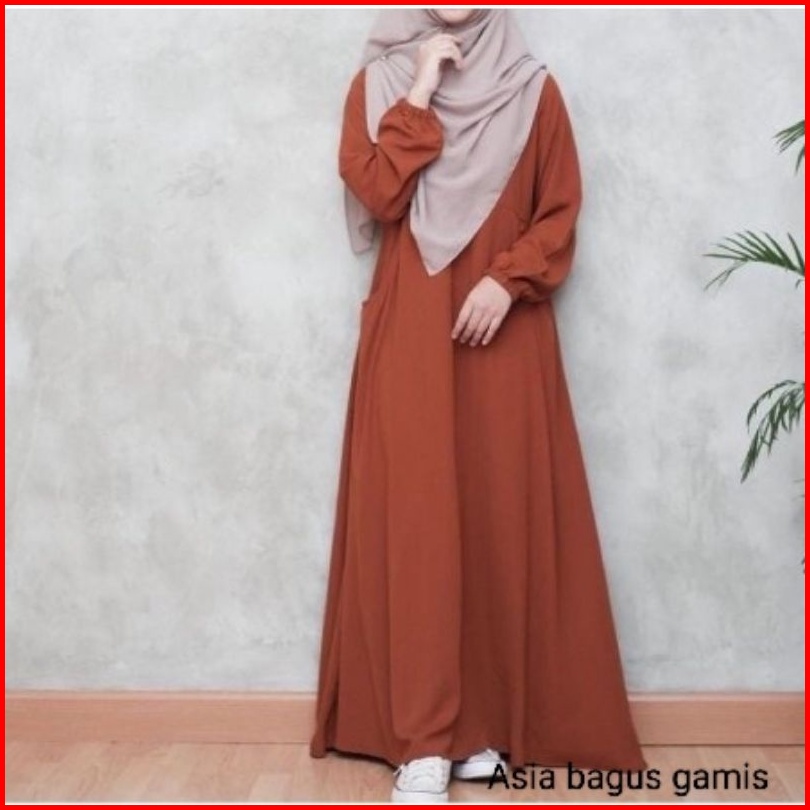 Gamis Abaya Dress Wanita Busui Tangan Karet Model Turki Ada Saku S M L Xl Xxl