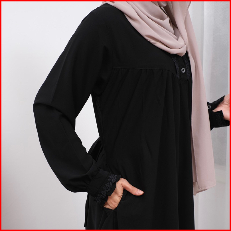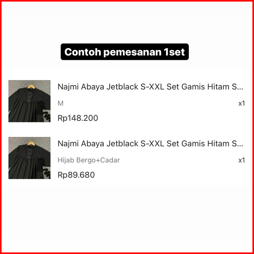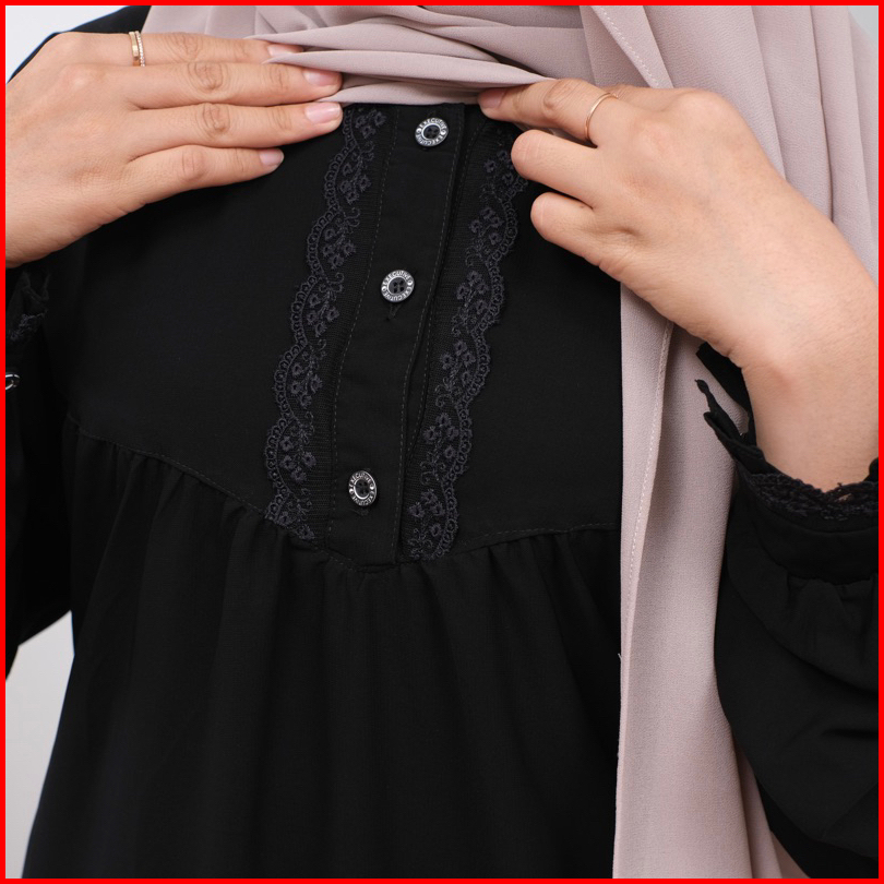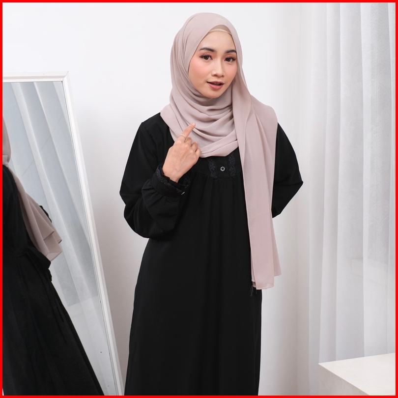 Najmi Abaya Jetblack S-xxl Set Gamis Hitam Syari Renda Exclusive