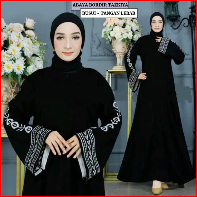 Abaya Bordir Gamis Hitam Polos Dress Syari Jubah Turkey Dubai Arab Jetblack Saudi