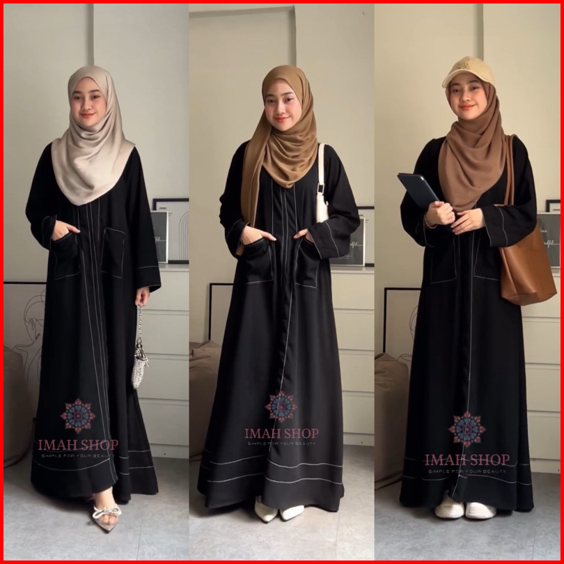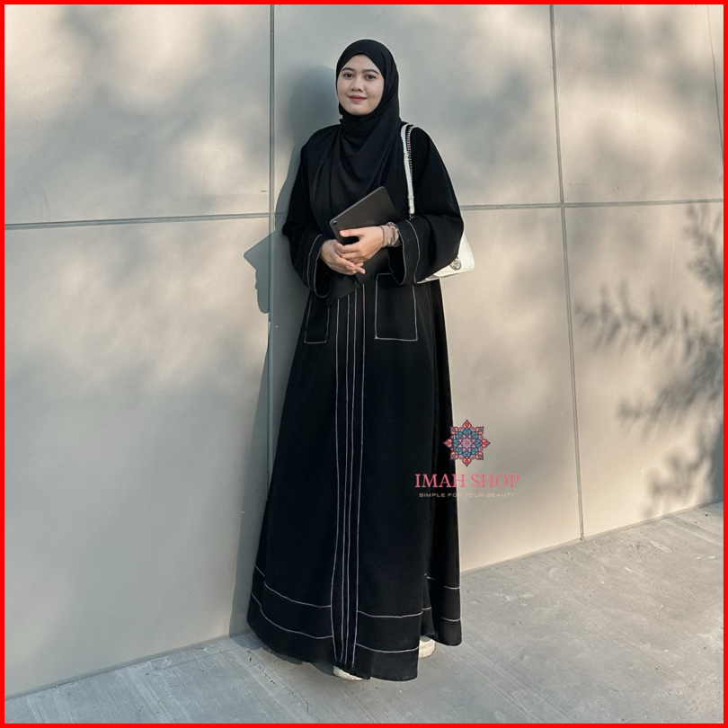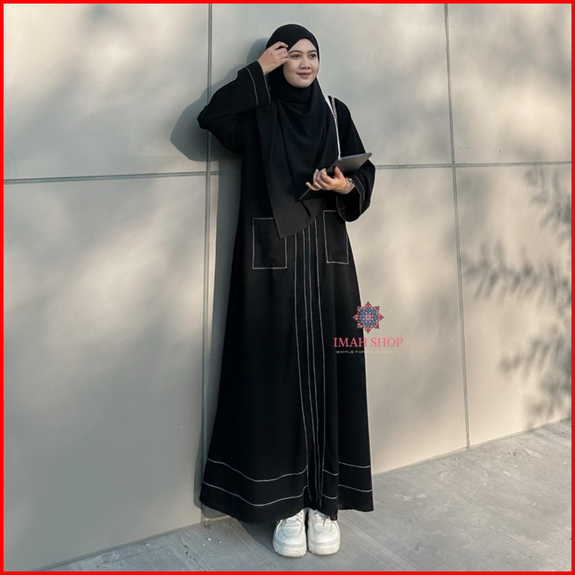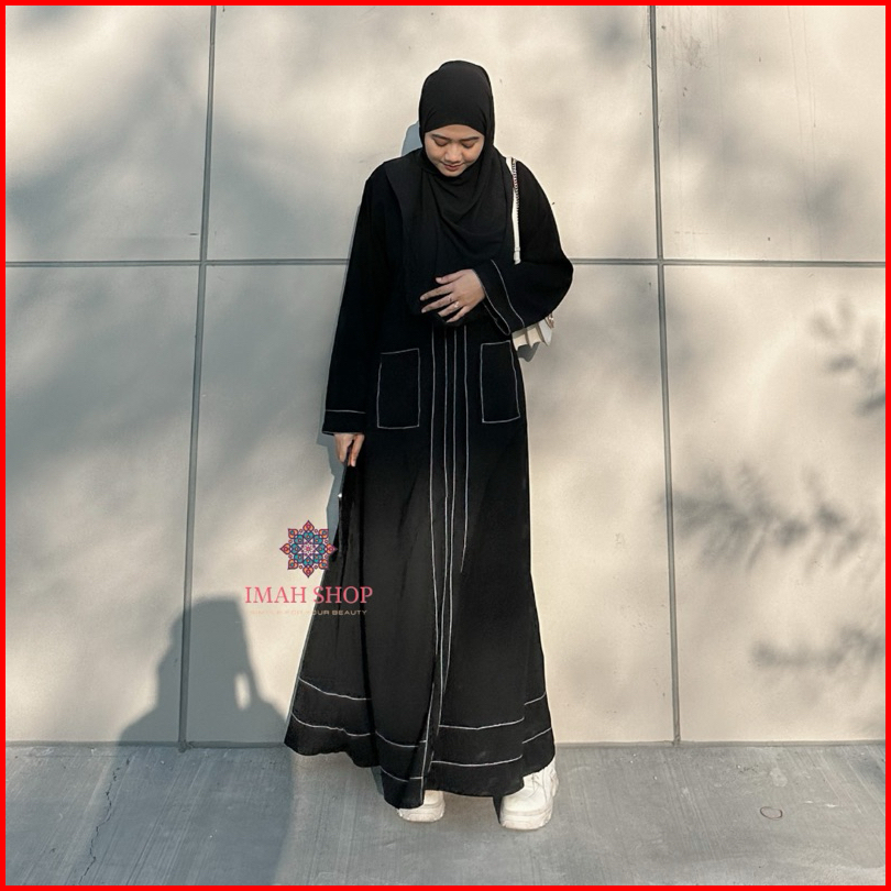 Abaya Gamis Hitam Dress Maxi Arab Saudi Kombinasi Jetblack Hitam Bordir Busui 101 By Imah Shop