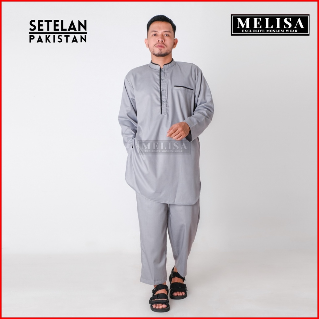 Baju Koko Pria Setelan Kurta Pakistan Dewasa Lengan Panjang Bahan Katun Toyobo Warna Abu Putih Navy Dan Hitam Model Terb