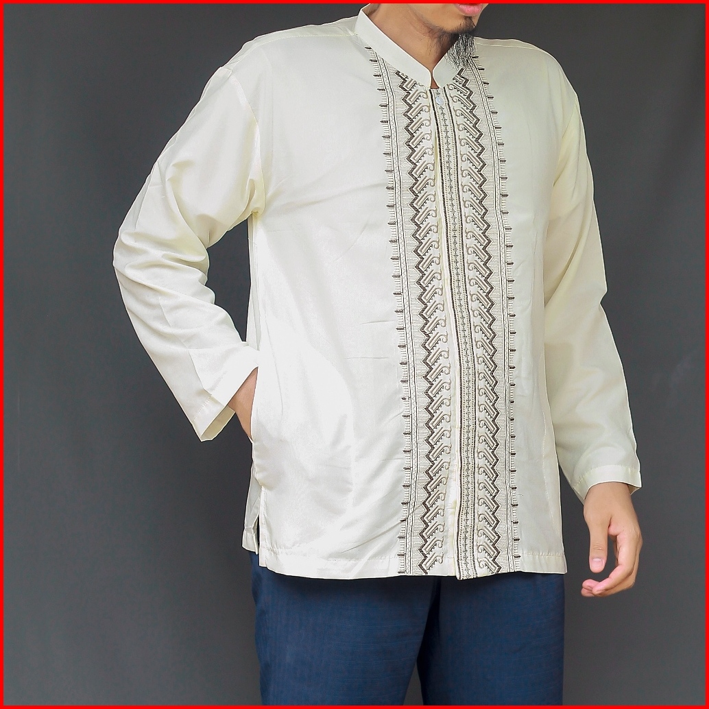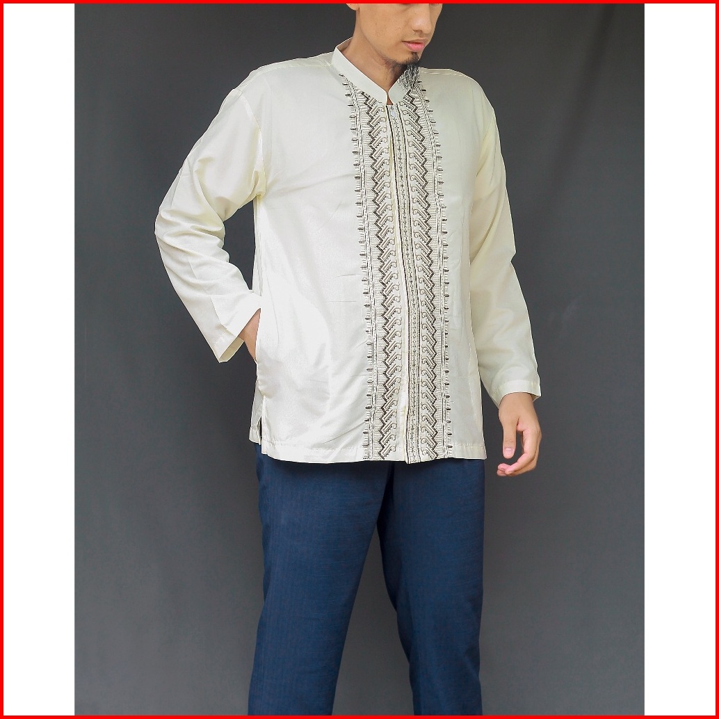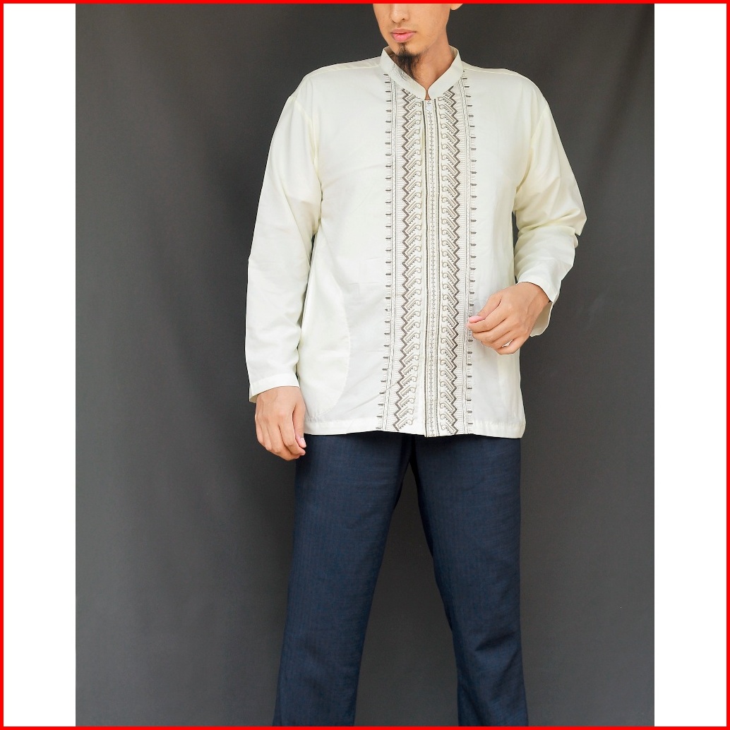 Baju Koko Khusus Broken White Kode B Pria Dewasa Lengan Panjang Muslim Grosir Bordir Asli
