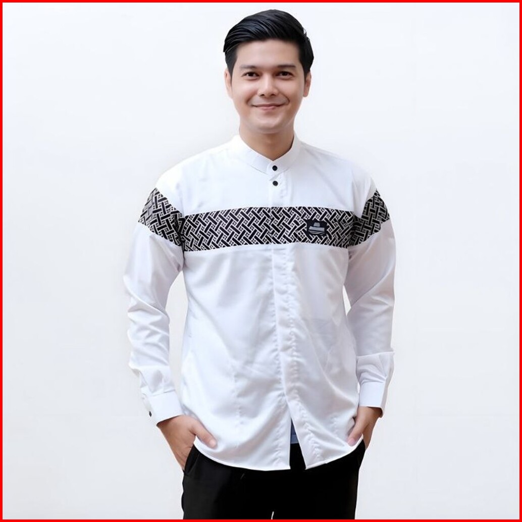 Baju Koko Pria Dewasa Lengan Panjang Motif Kobata Qynang Kombinasi Batik Terbaru