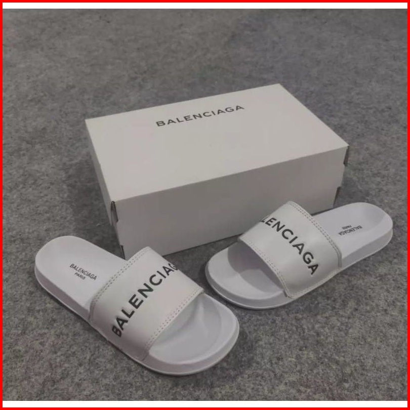 Sandal Slop Full White Pria Wanita Elegan Sandal Slide Grande Ori