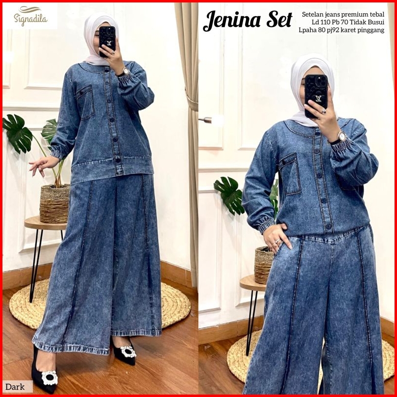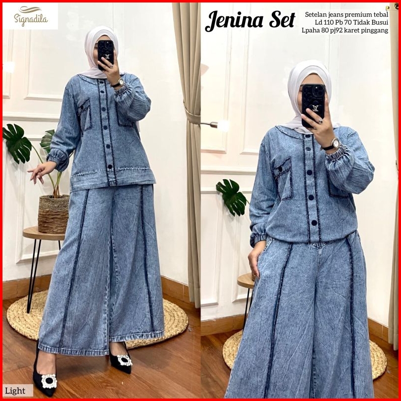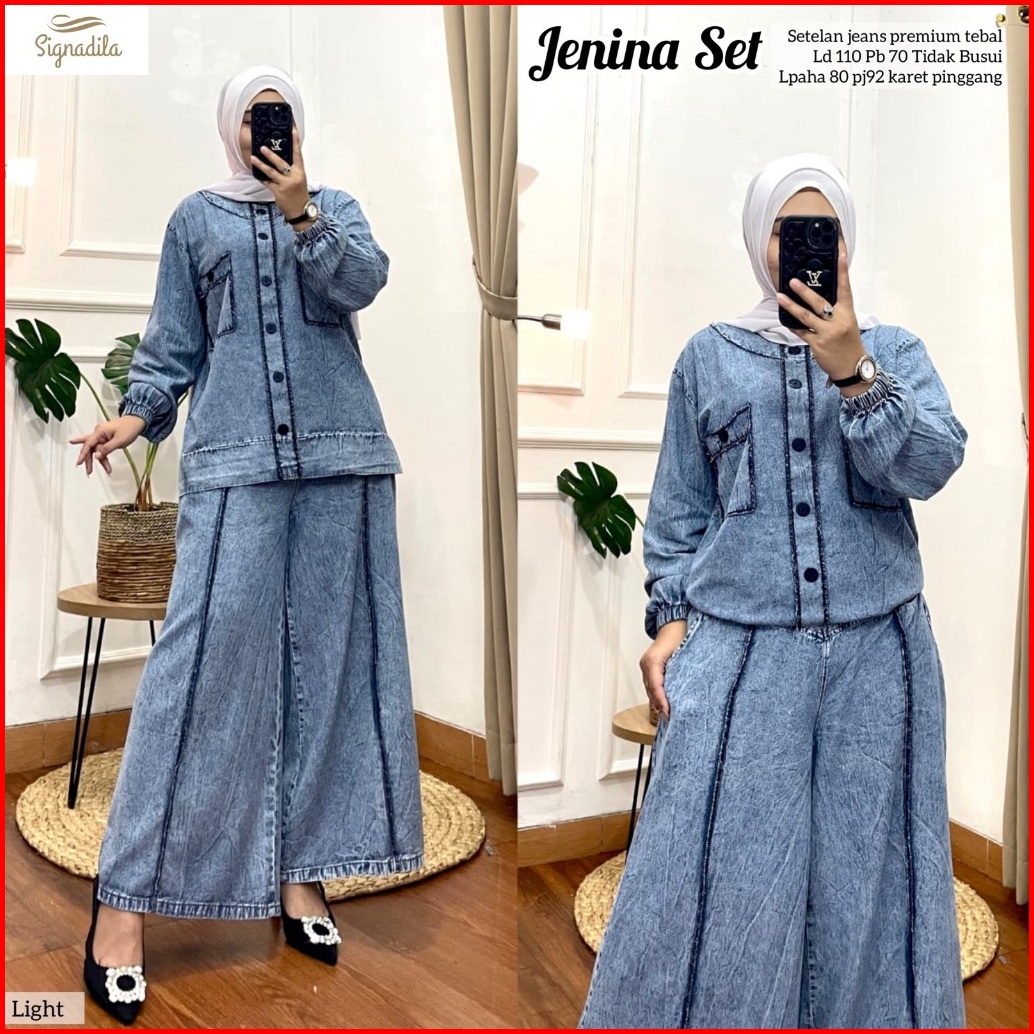 Ready Siap Kirim Jenina Set Setelan Celana Jeans Wanita Terbaru