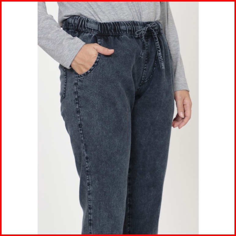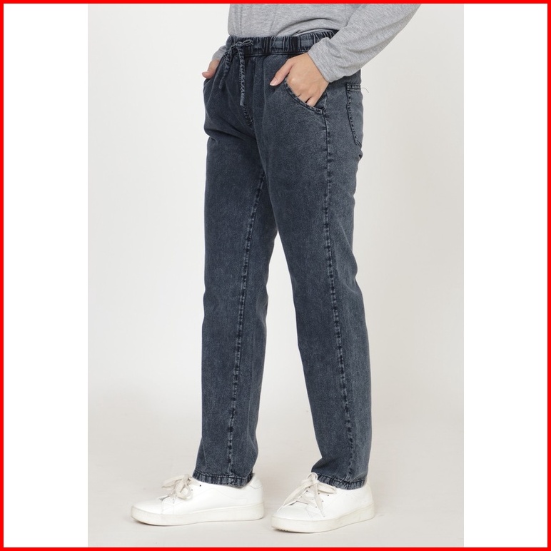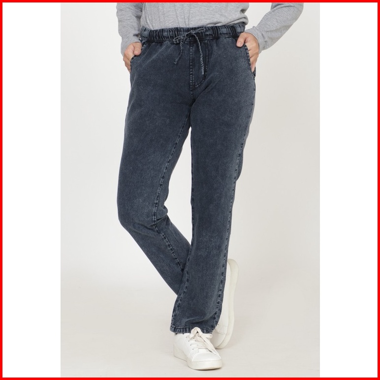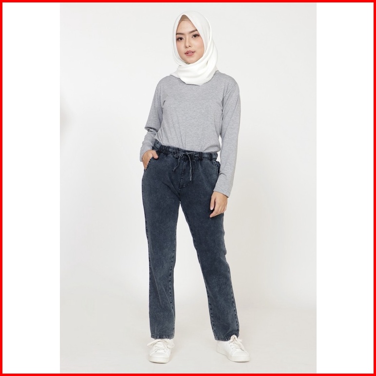 Celana Panjang Jeans Basic Wanita Fit Xl Pinggang Karet Zahra Signature Longpant Denim Daily 2