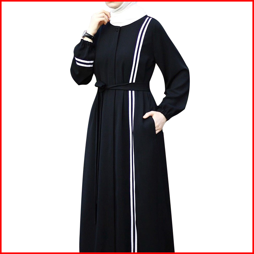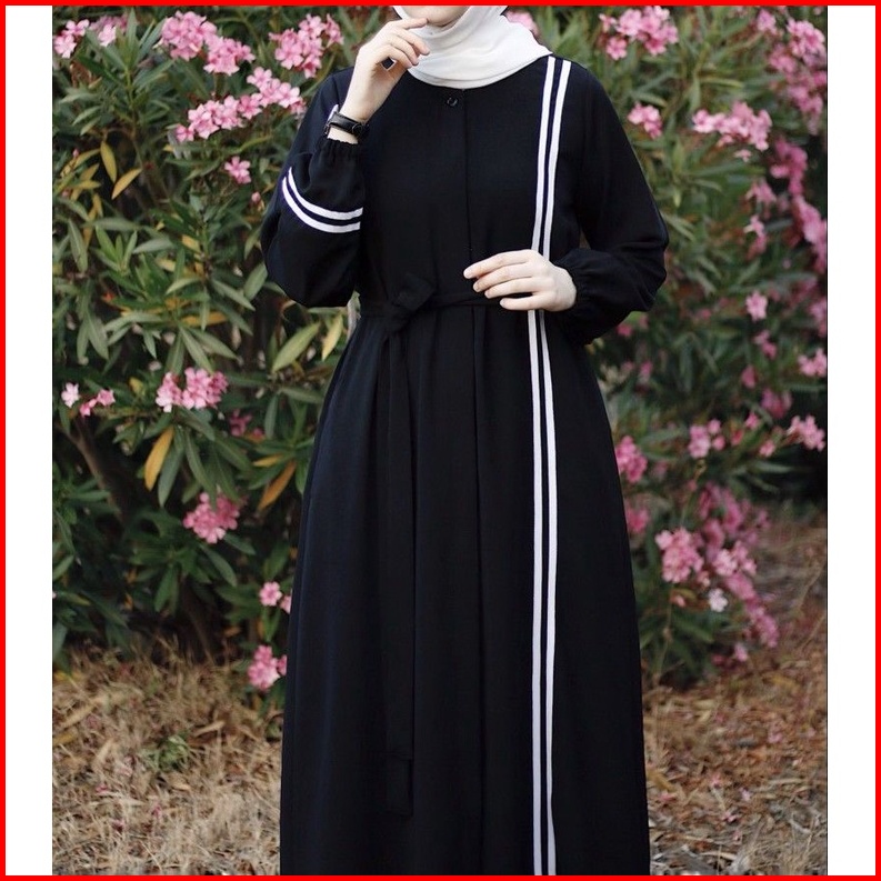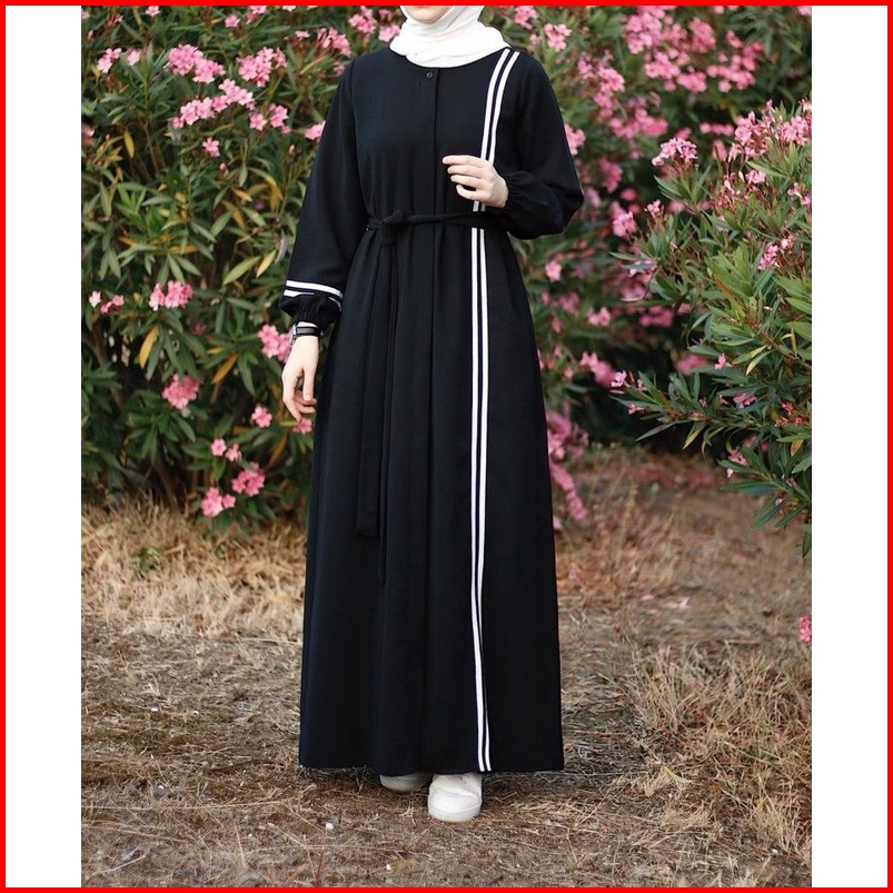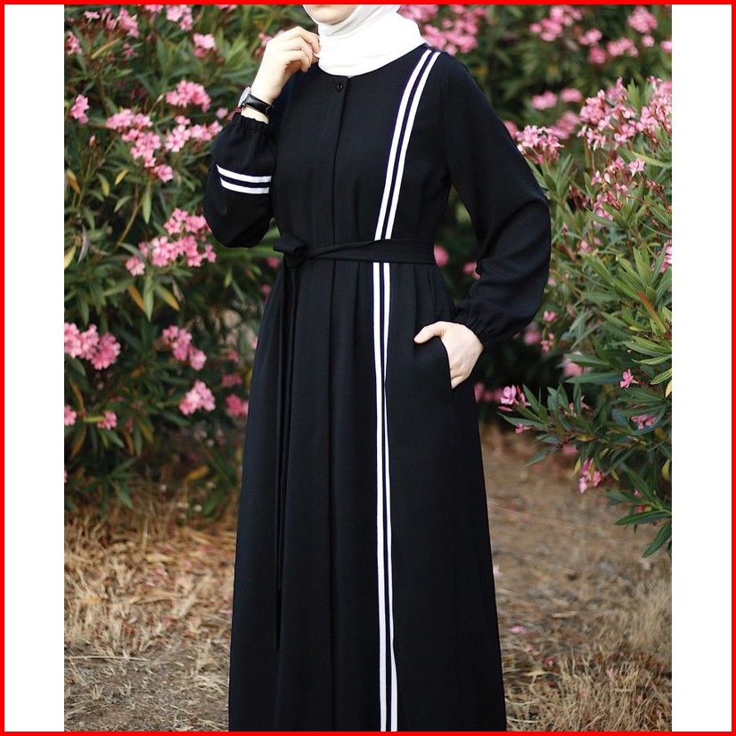 Abaya Arab Basic Polos Abaya Turki Bisa Jadi Outer - Hitam List Putih