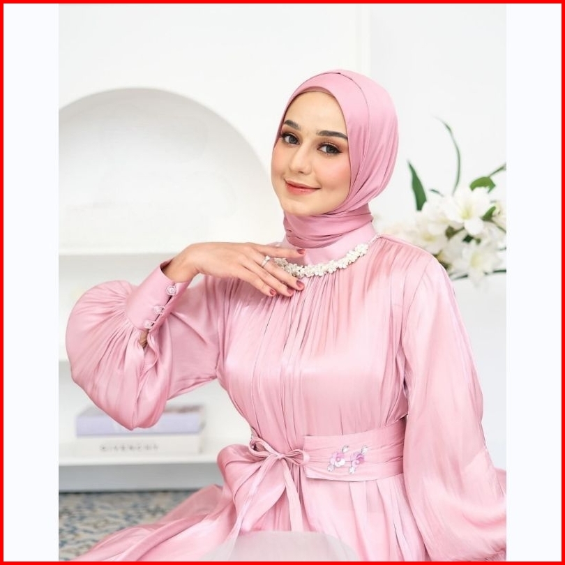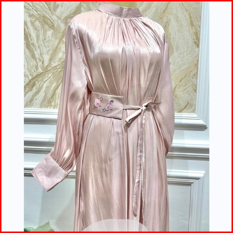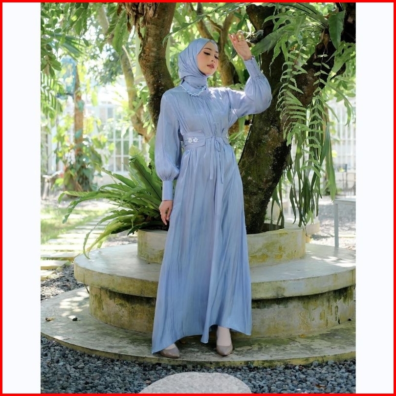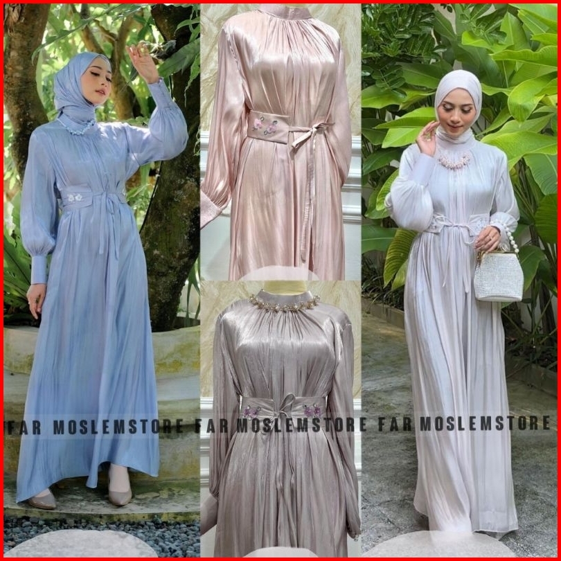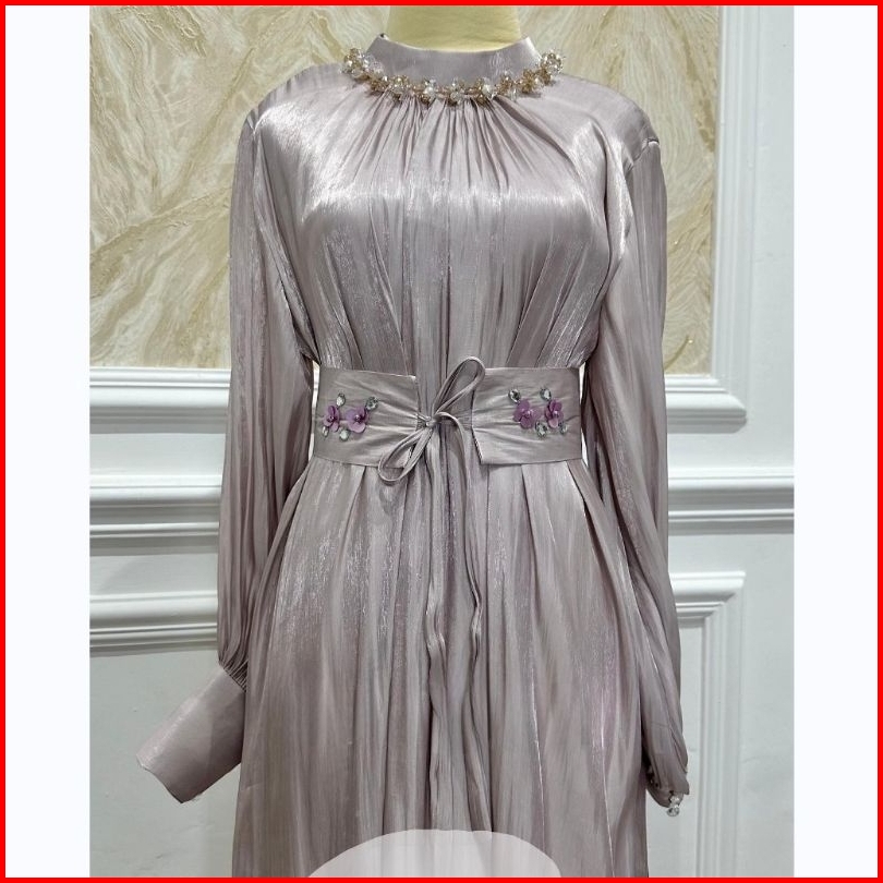 Casandra Dress Shimmer Abaya Premium Gamis Shimer Free Belt Fashion Muslim Wanita Kekinian Far Moslemstore