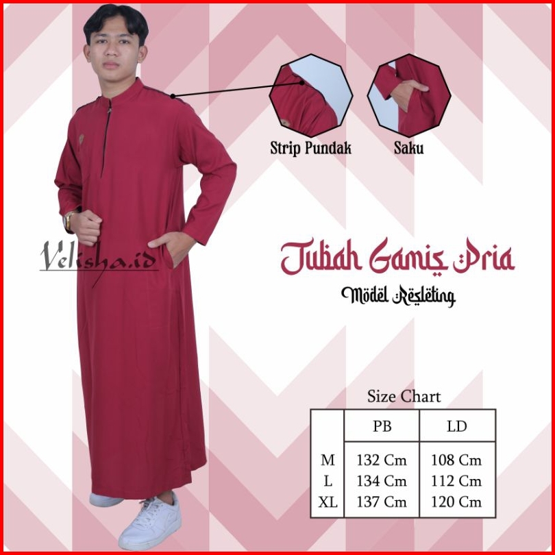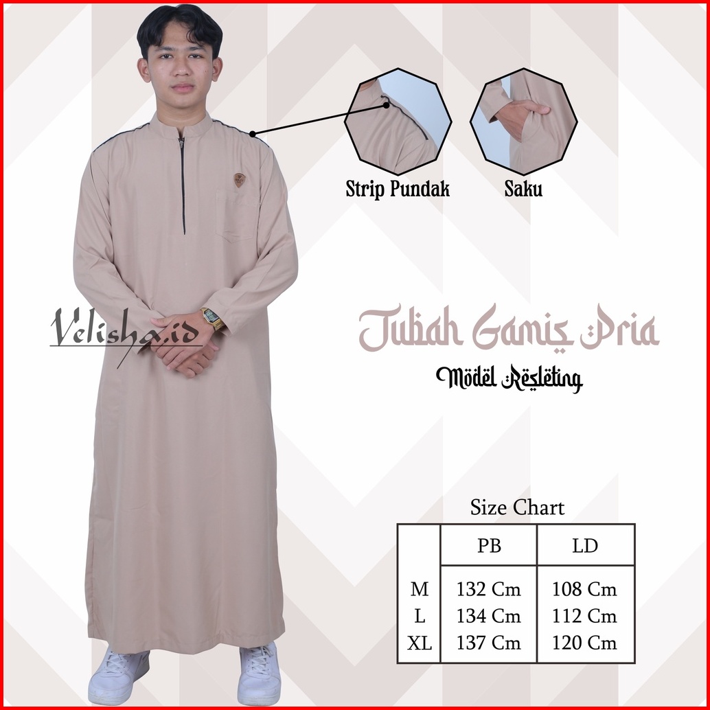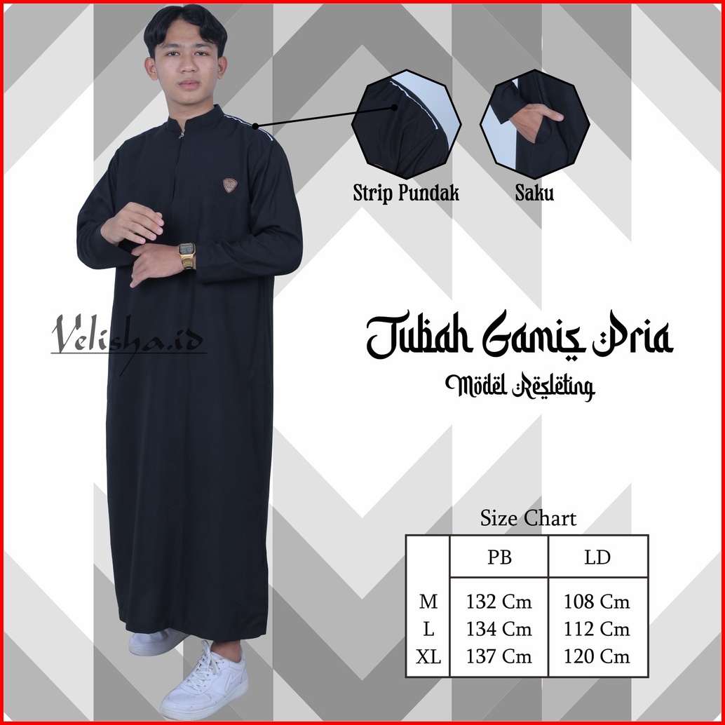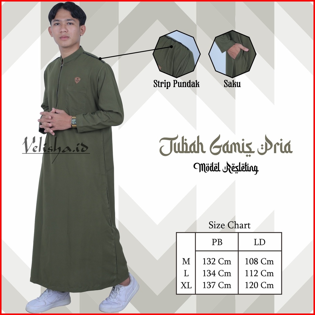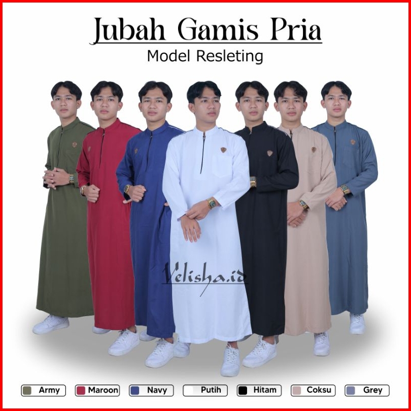 Jubah Muslim Pria Remaja Dewasa Anak Laki Lak Lengan Panjang Kekinian Model Resleting - Gamis Laki Laki Dewasa - Gamis P