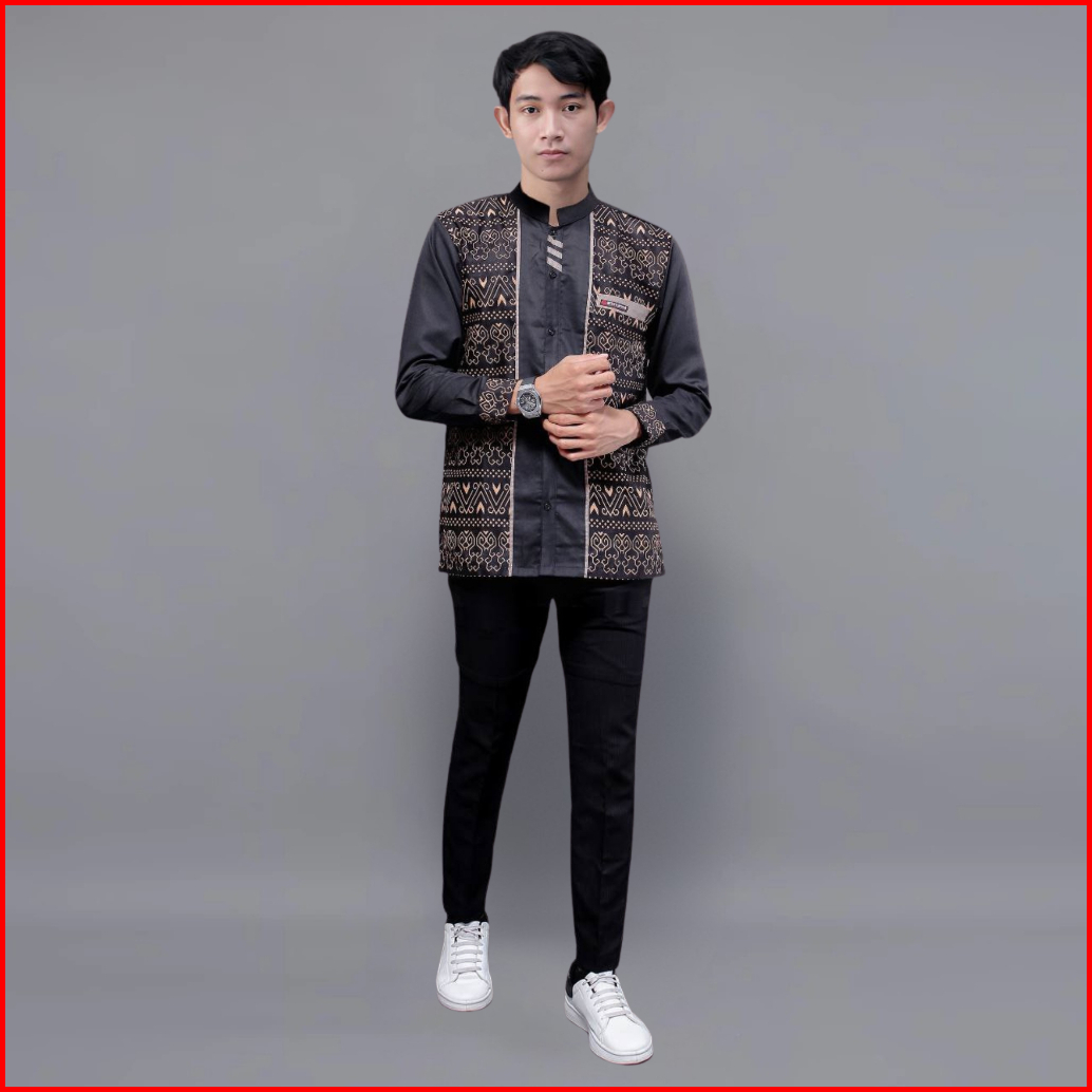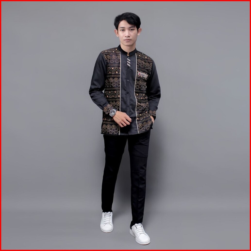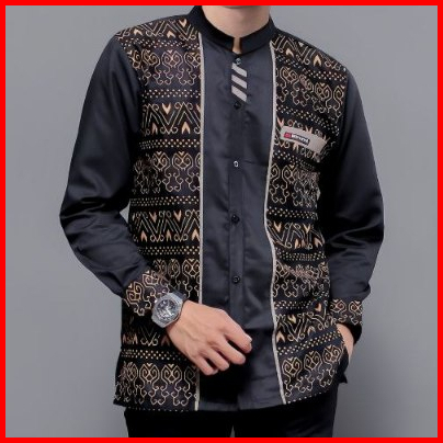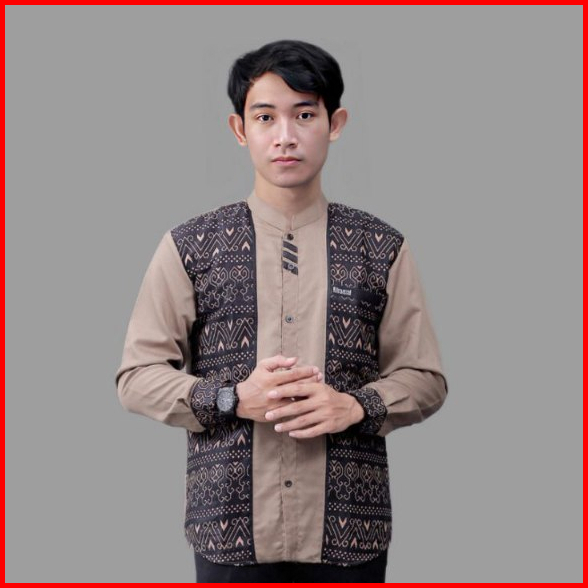 Baju Koko Pria Dewasa El Rumi Kombinasi Batik Motif Jarilist Kemeja Koko Batik Pria Elrumi