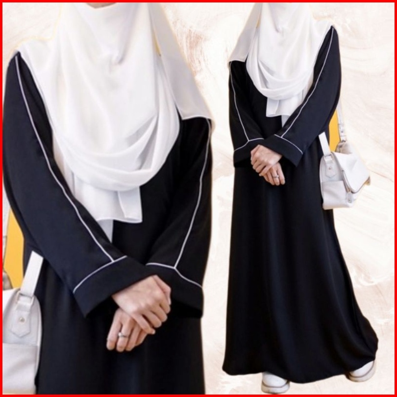 Logo Haibahf Abaya Basic Remaja List Putih Gamis Turki Kekinian