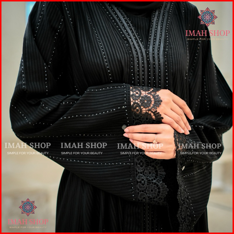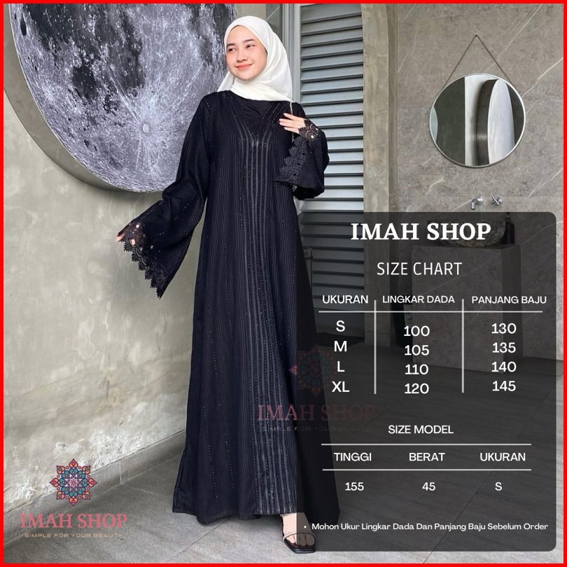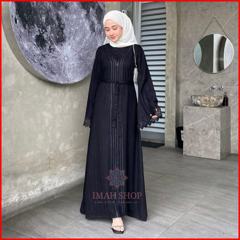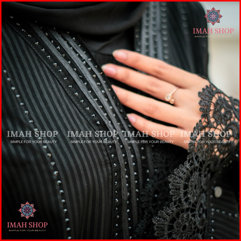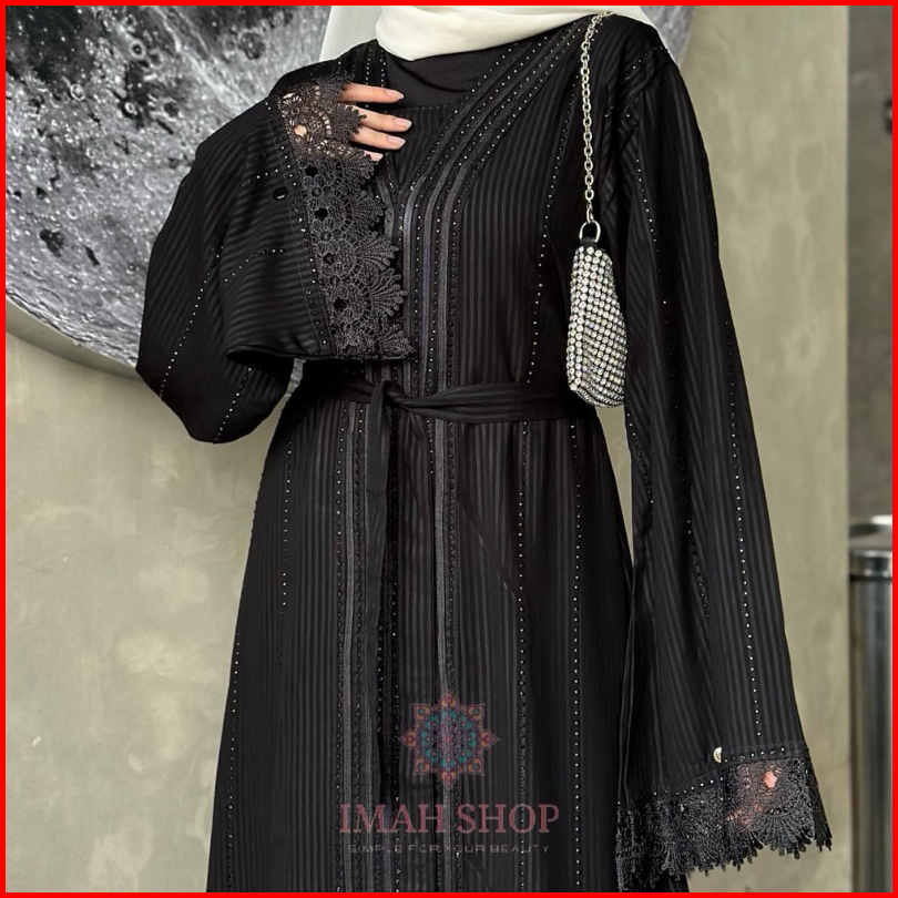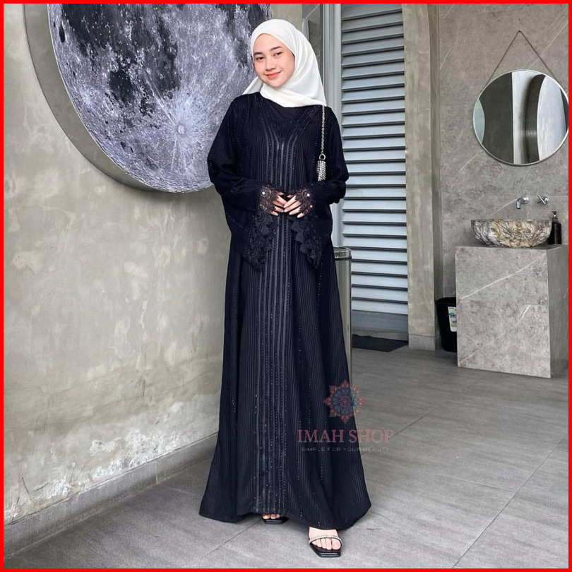 Abaya Hitam Turkey Gamis Syari Muslimah Bahan Jetblack Hitam Kombinasi Renda Imah Shop Dress Arab Saudi 951