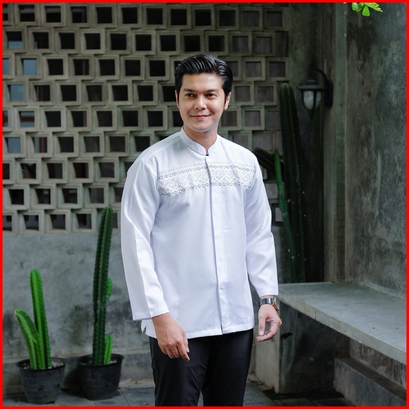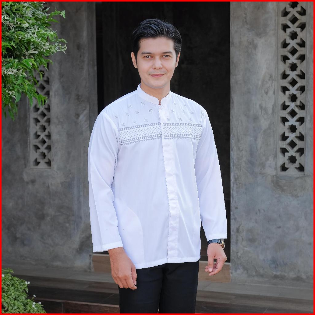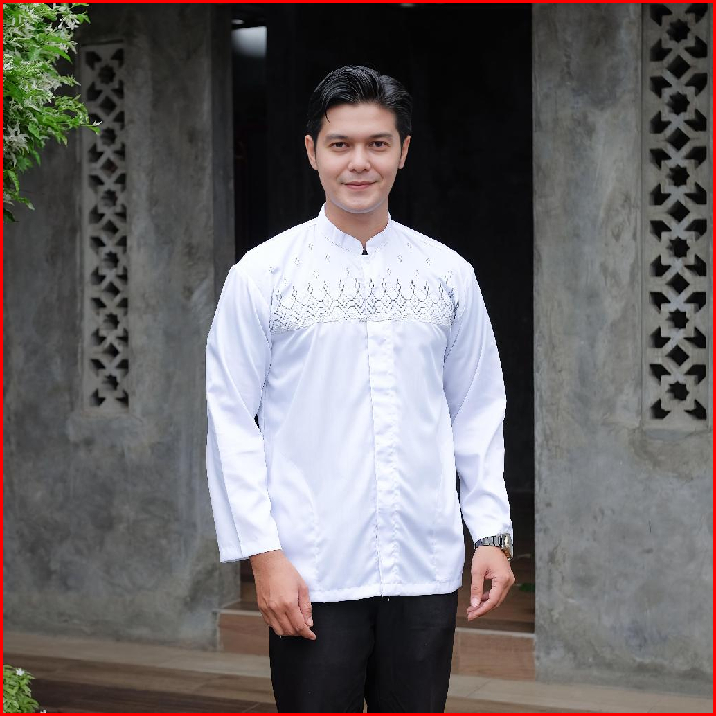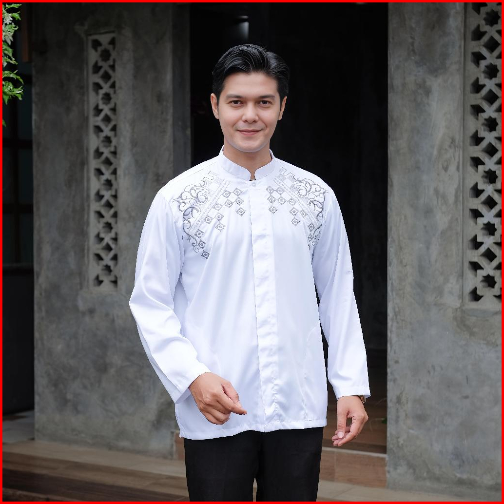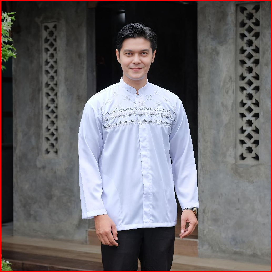 Baju Koko Dewasa Putih Warna Lengan Panjang Bordir Ukuran M L Xl Katun Toyobo