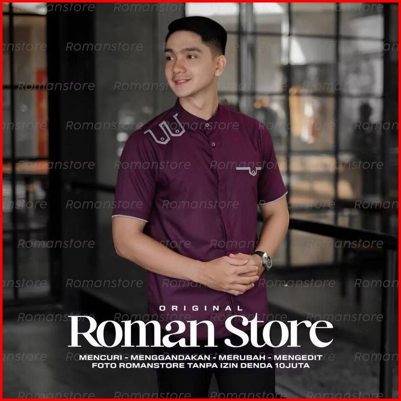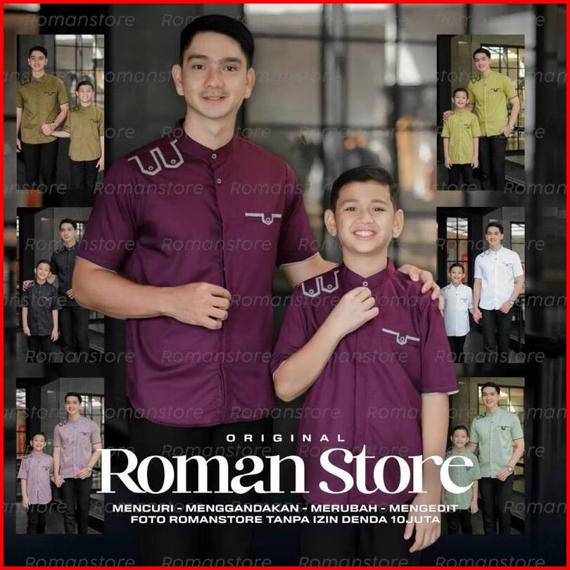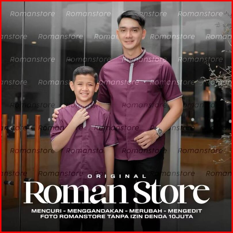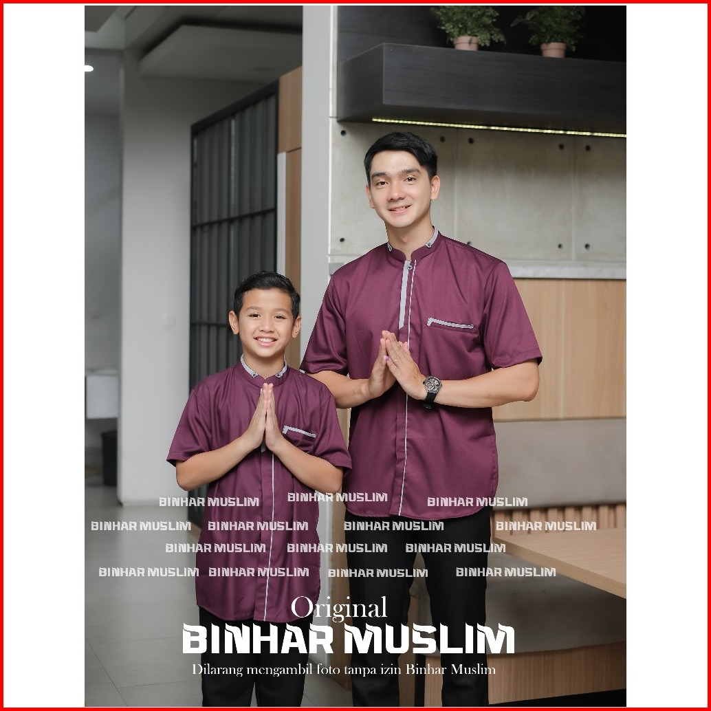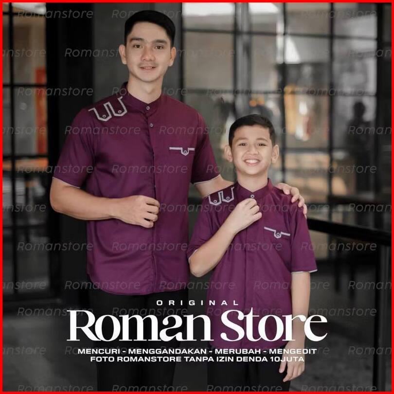 Baju Koko Couple Ayah Anak Laki Laki Lengan Pendek Bahan Toyobo Import Terbaru 2025 Warna Denim Burgundy
