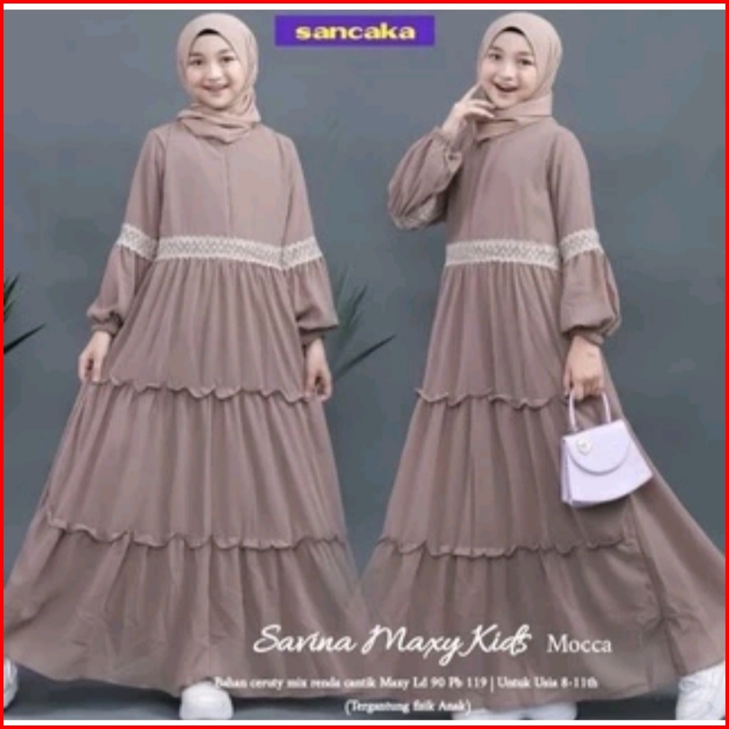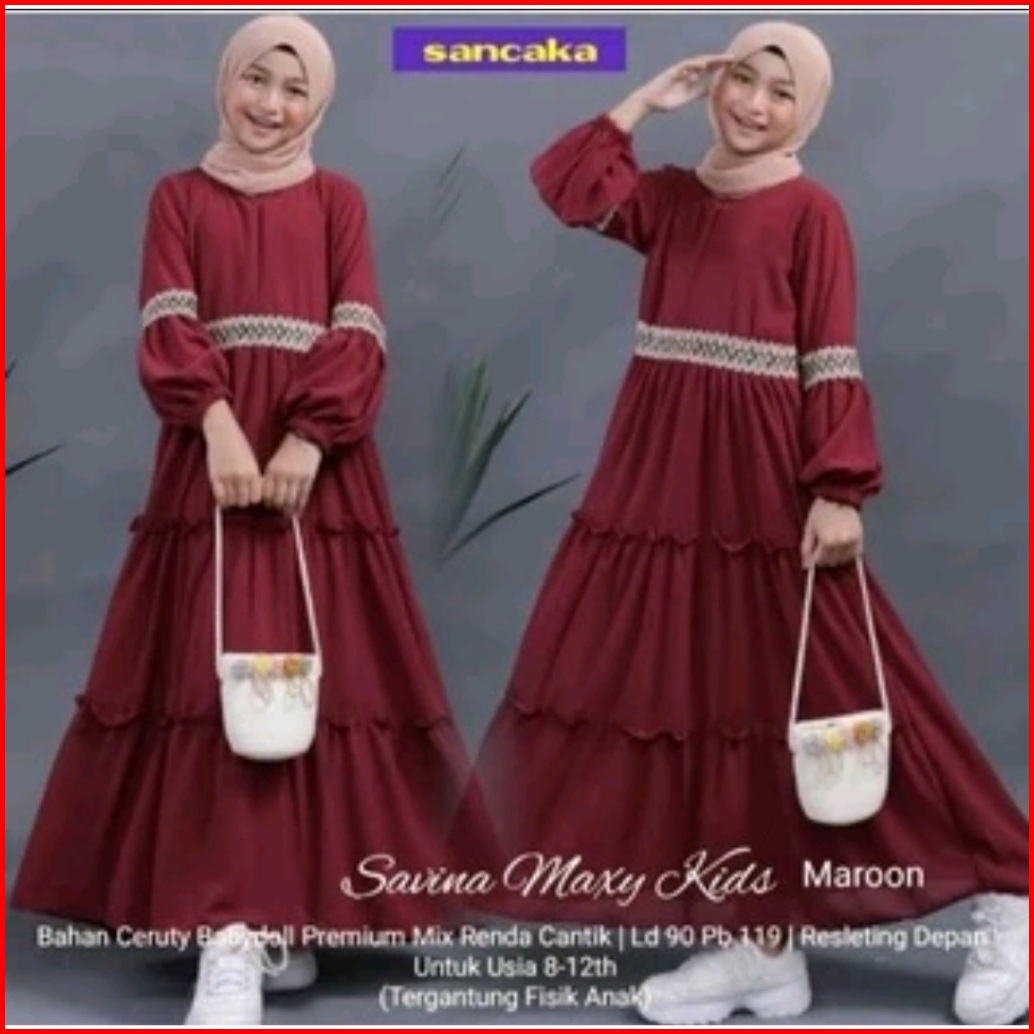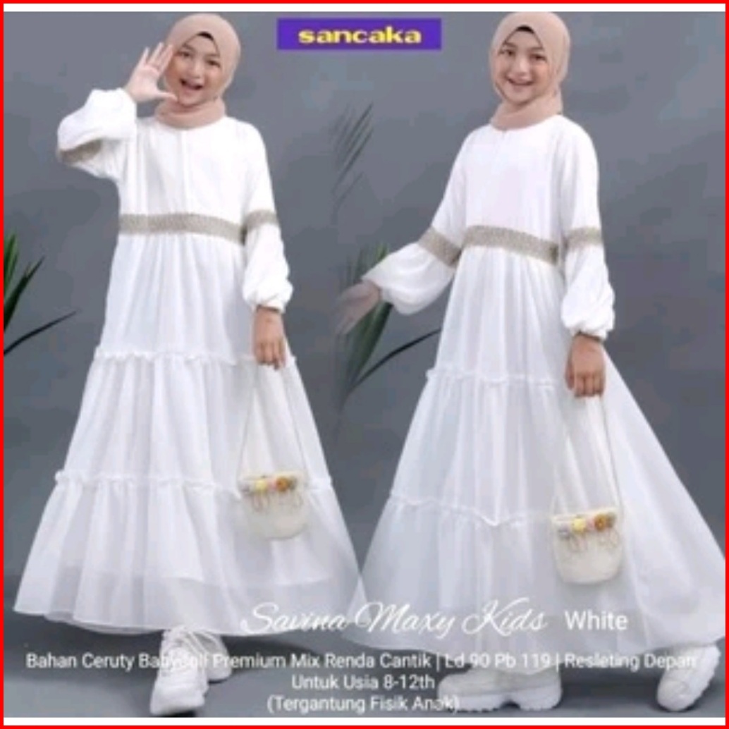 Cps.gamis Anak Ceruty Babydol Fullpuring Mix Renda Cantik Savina Maxy Kids Untuk Usia 8 16 Tahun