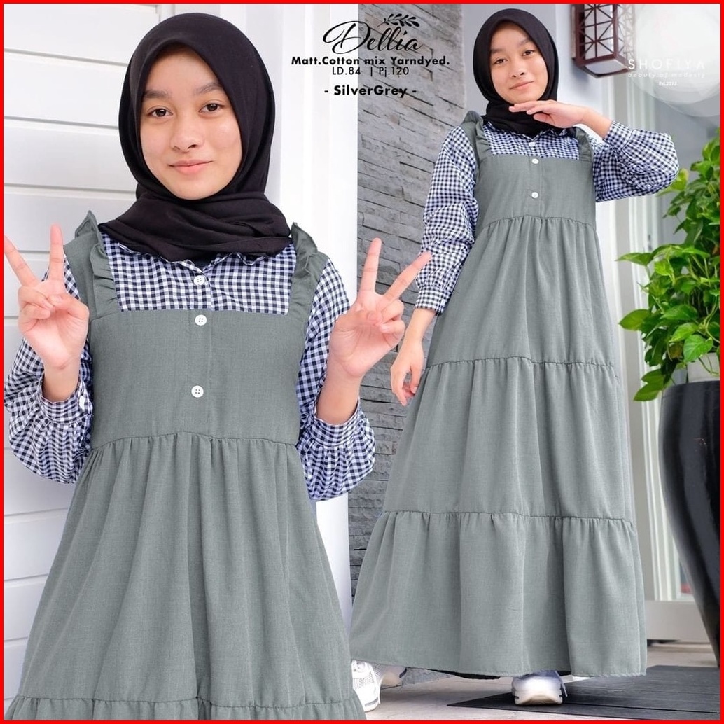 Gamis Anak Tanggung Terbaru Elegant Delia Dress Umur 9-11-12-14 Tahun 4 Serian Warna.