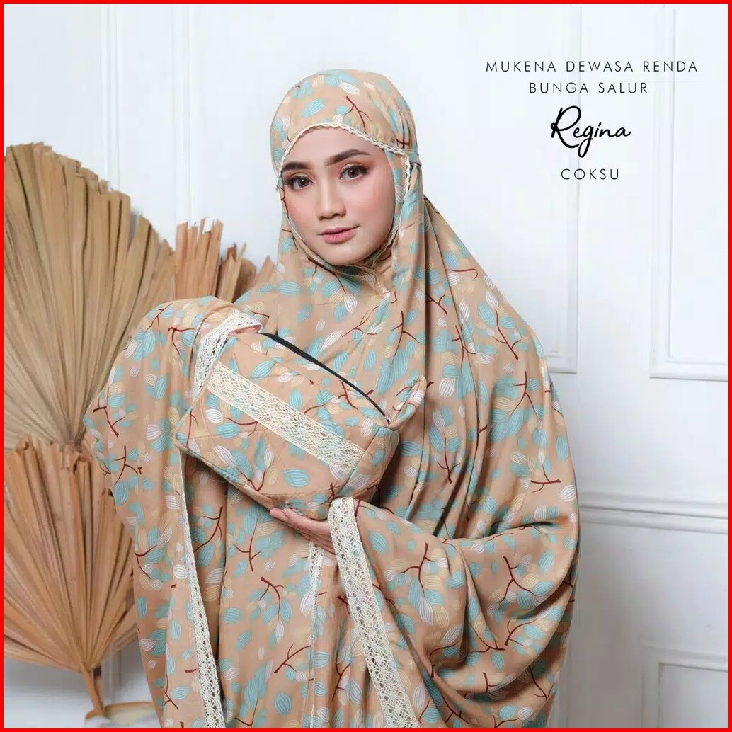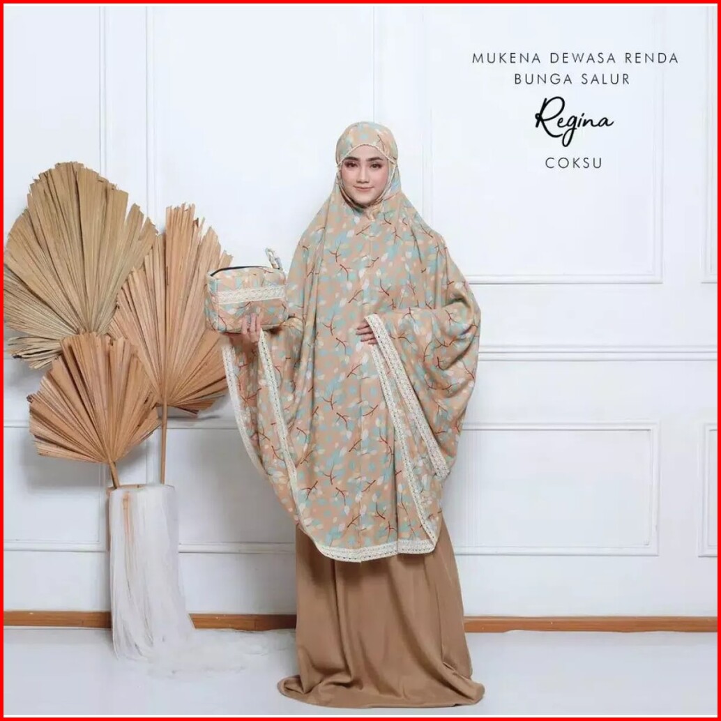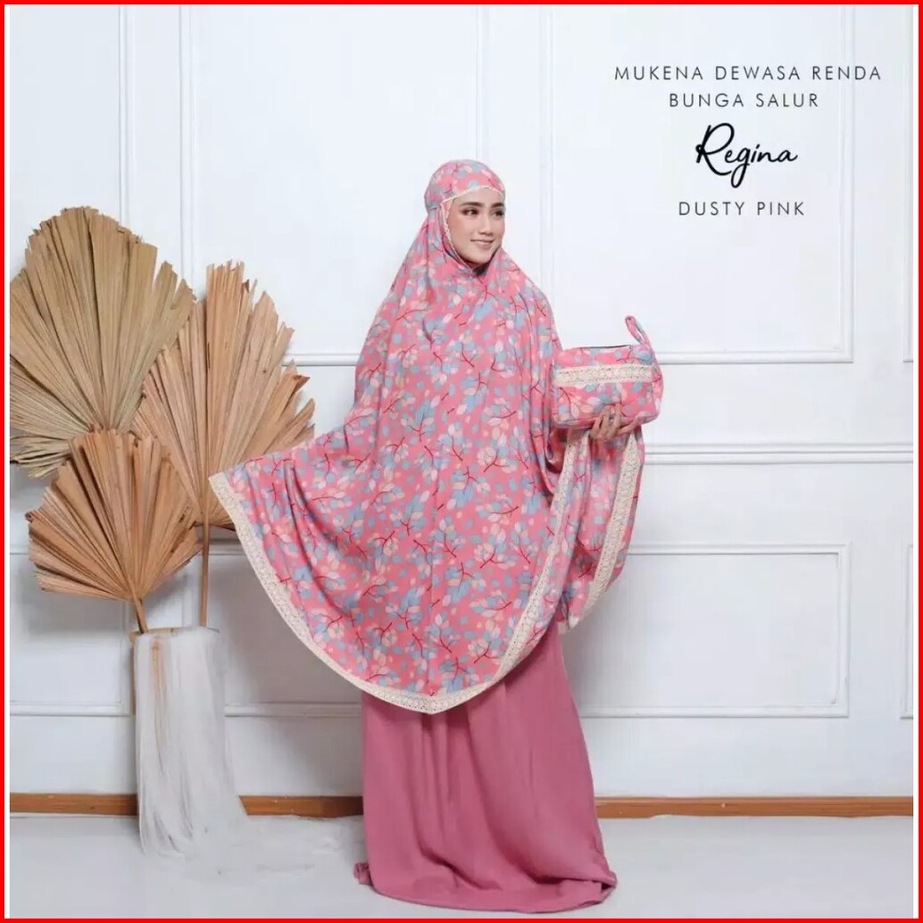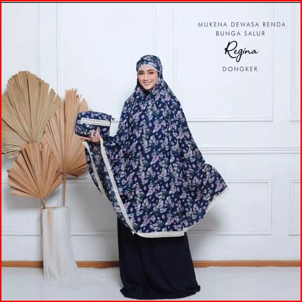 Mukena Travelling Regina Bunga Salur Rayon Printing Premium Mukena Dewasa Renda Kombinasi Tas Cantik