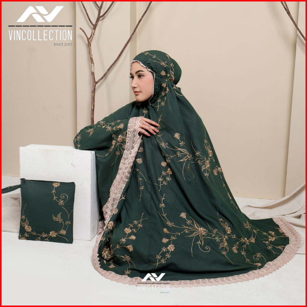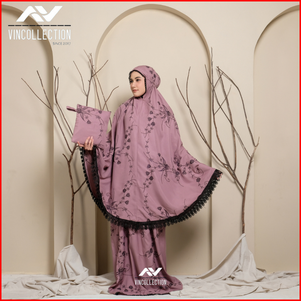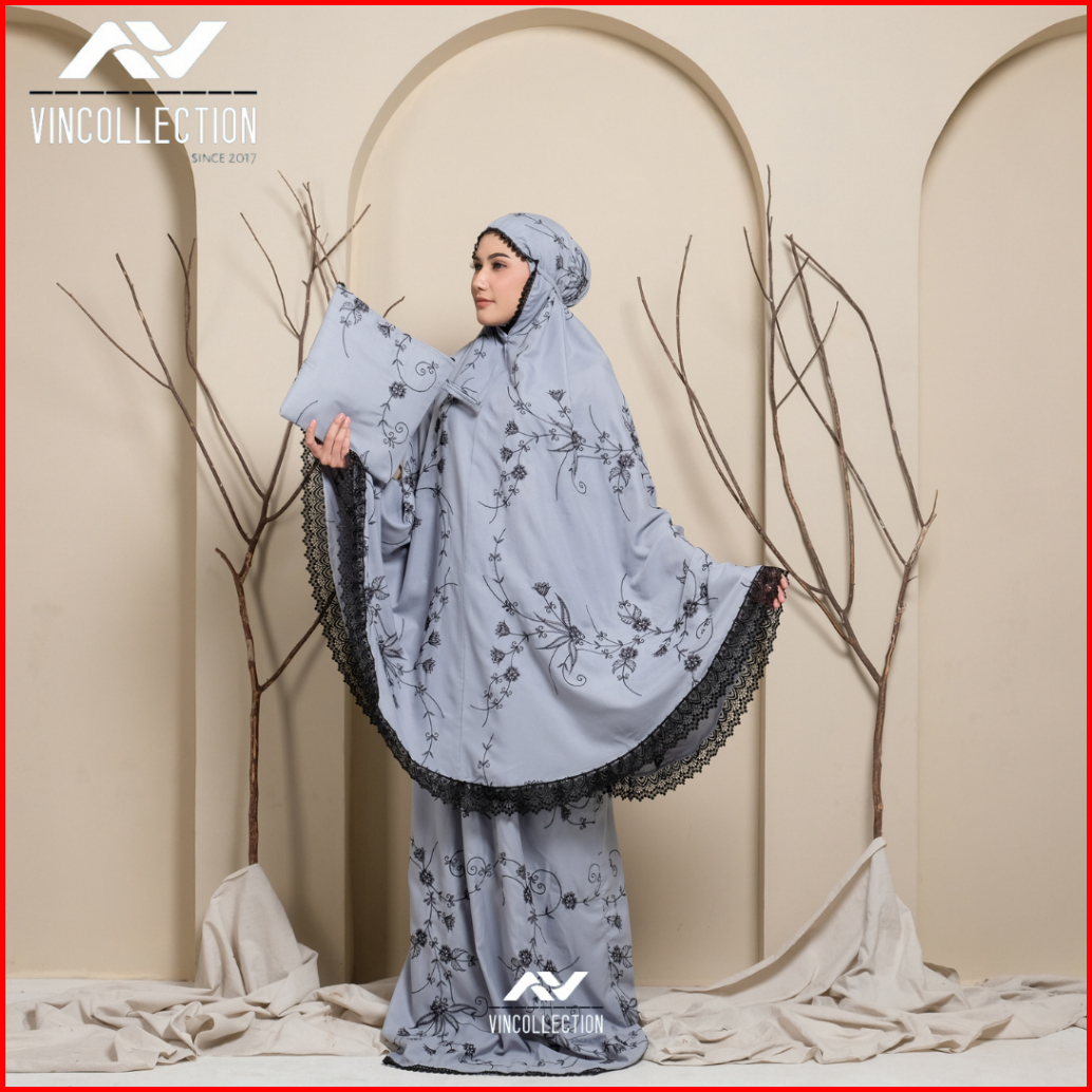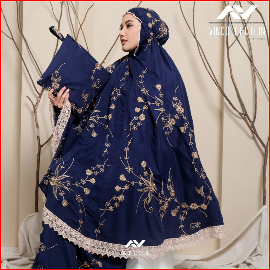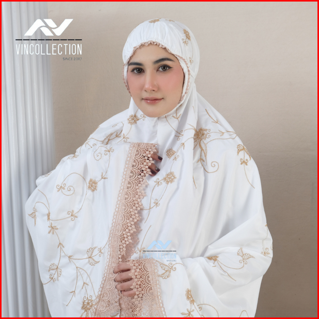 Vincollection86 - Mukena Dewasa Katun Premium Bordir Latisha Bunga Teratai