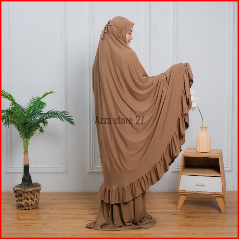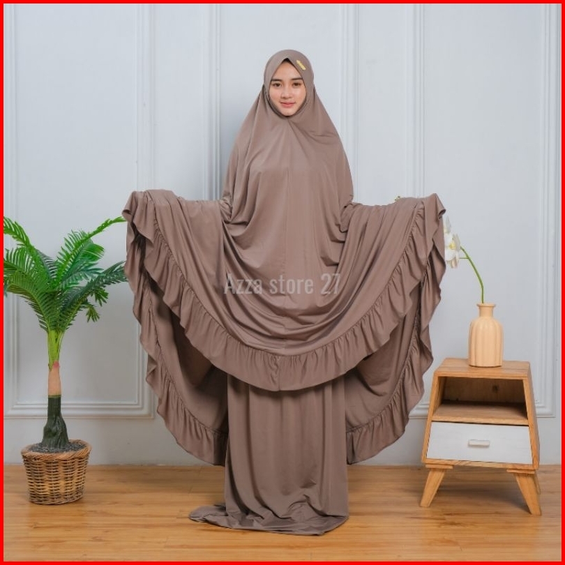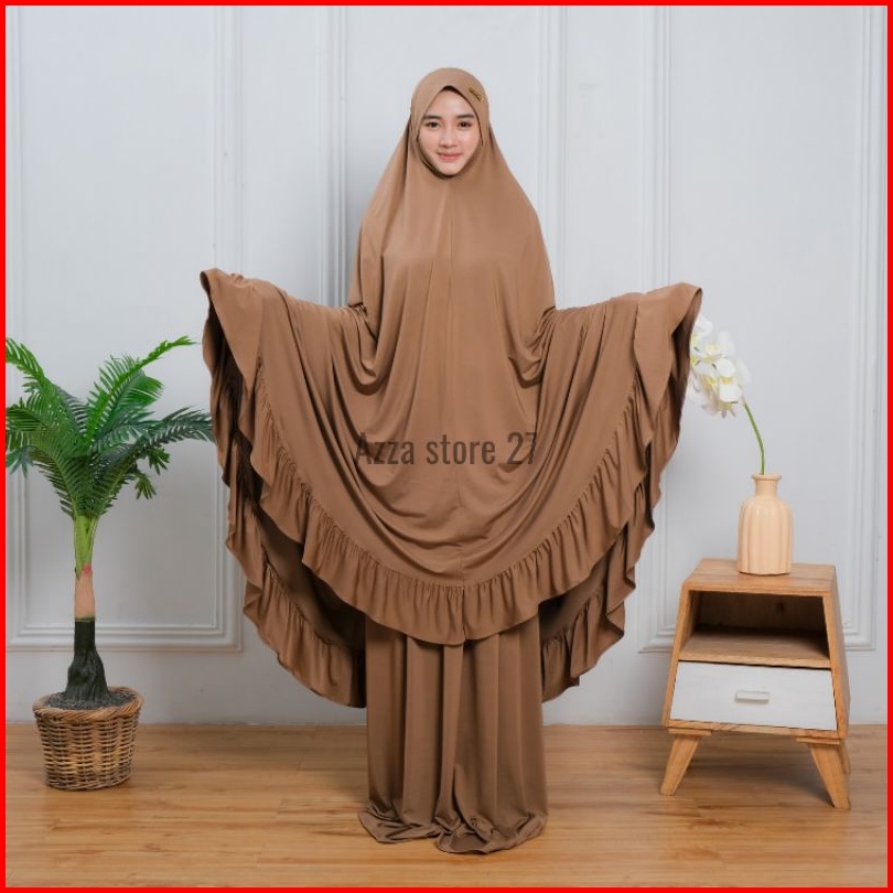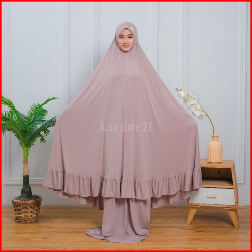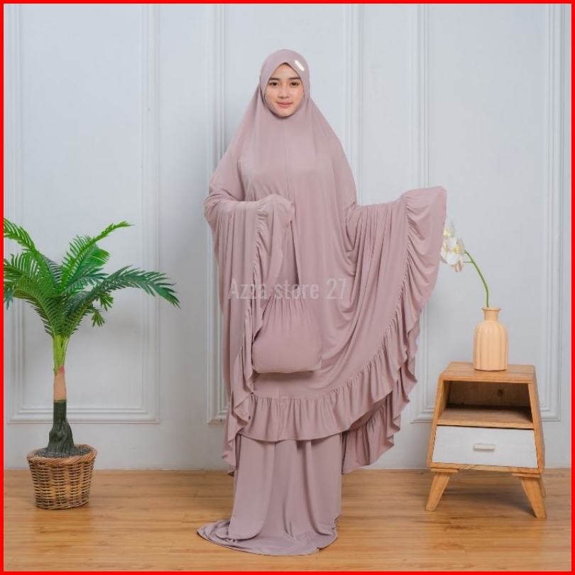 Mukena Dewasa Jersey Premium Rempel Mewah Syar I Malaysia Menutup Dagu Super Jumbo