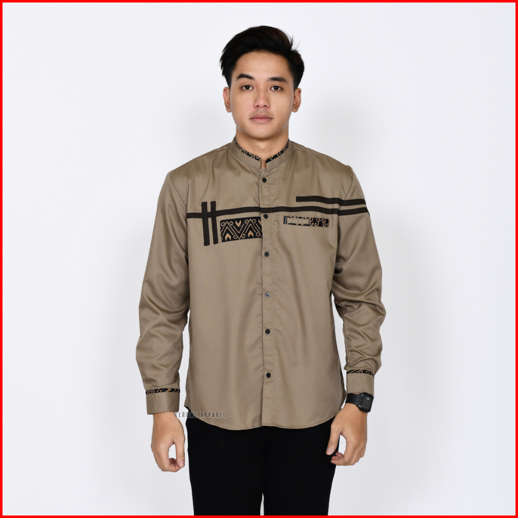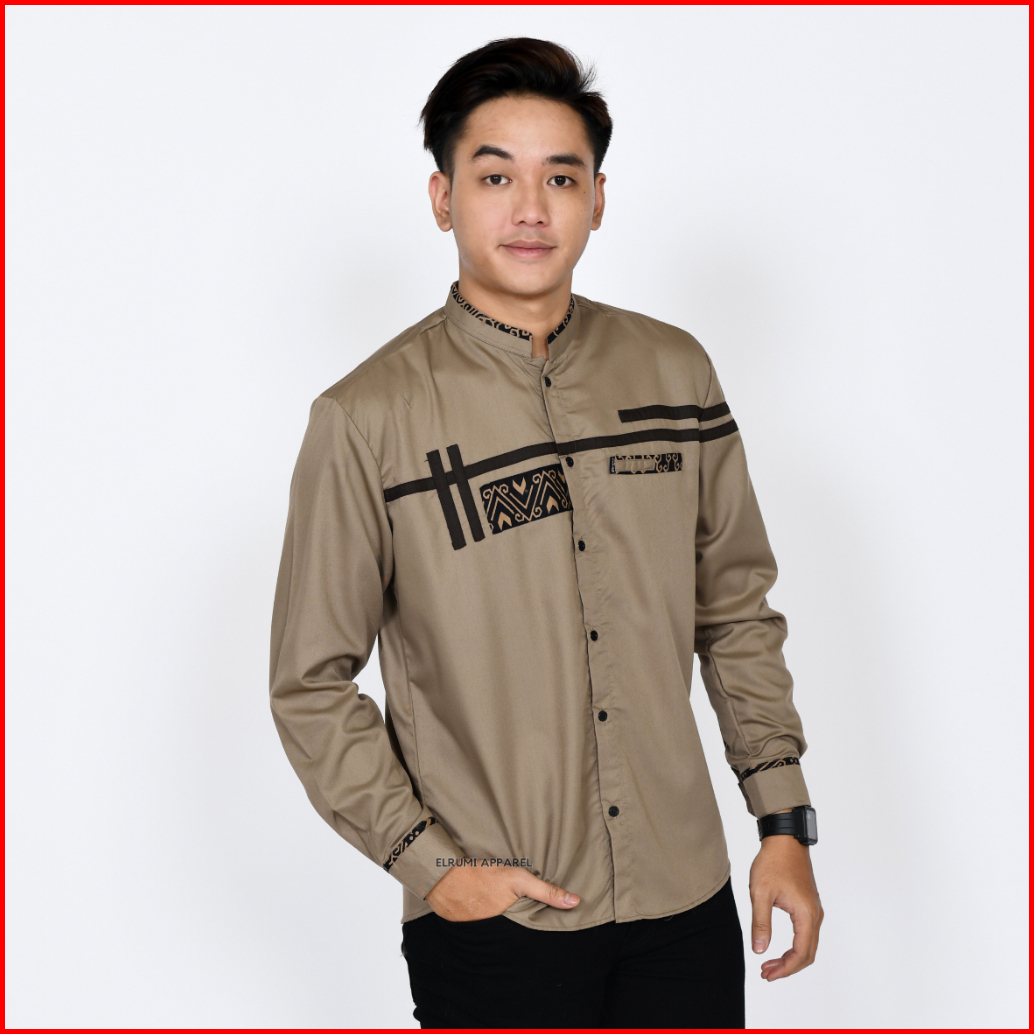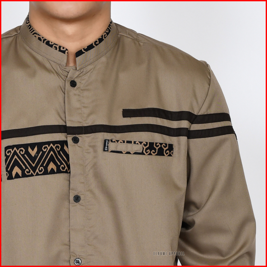 Baju Koko Pria Lengan Panjang Coklat Batik Slim Fit Motif Zoled Original Elrumi