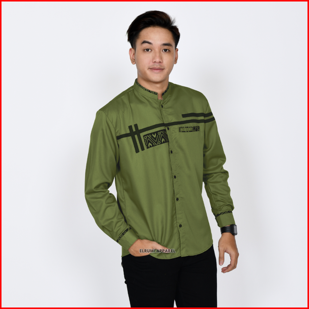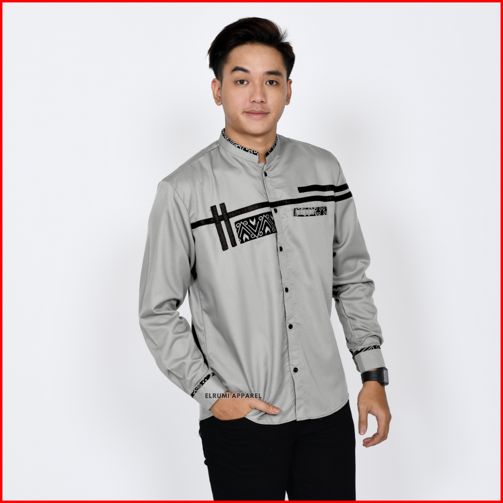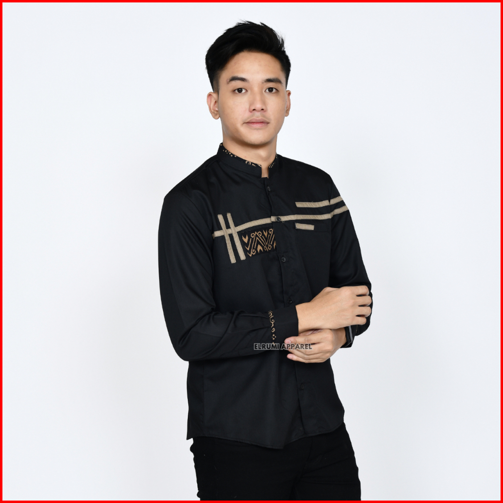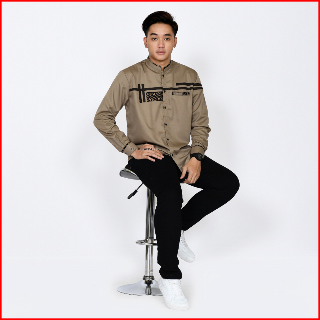 Baju Koko Pria Lengan Panjang Coklat Batik Slim Fit Motif Zoled Original Elrumi