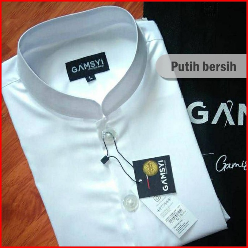 Baju Koko Putih Polos Habaib Lengan Panjang Gamsyi
