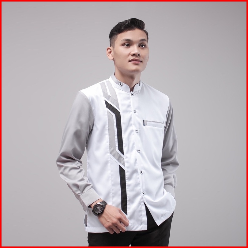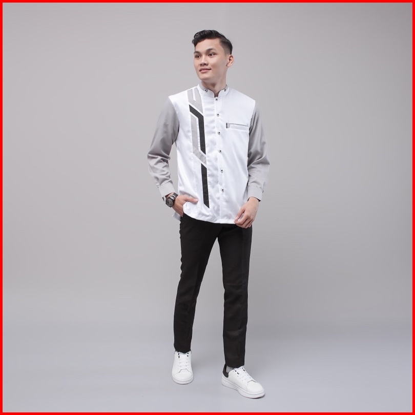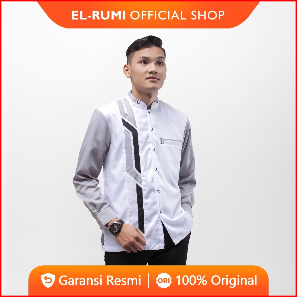 Baju Koko Pria Dewasa Elrumi Lengan Panjang Motif Sinergi Warna Putih
