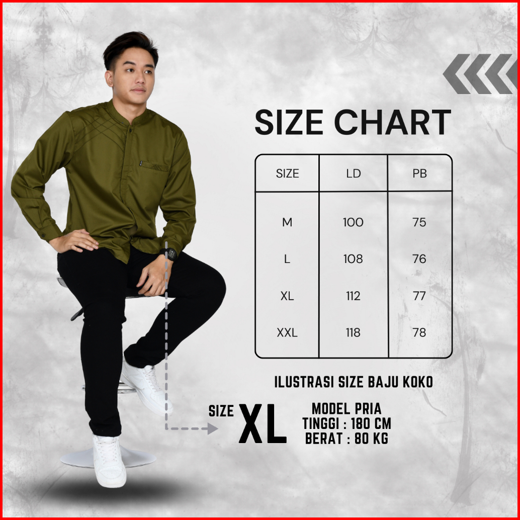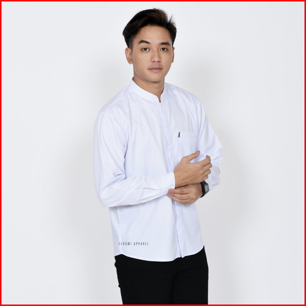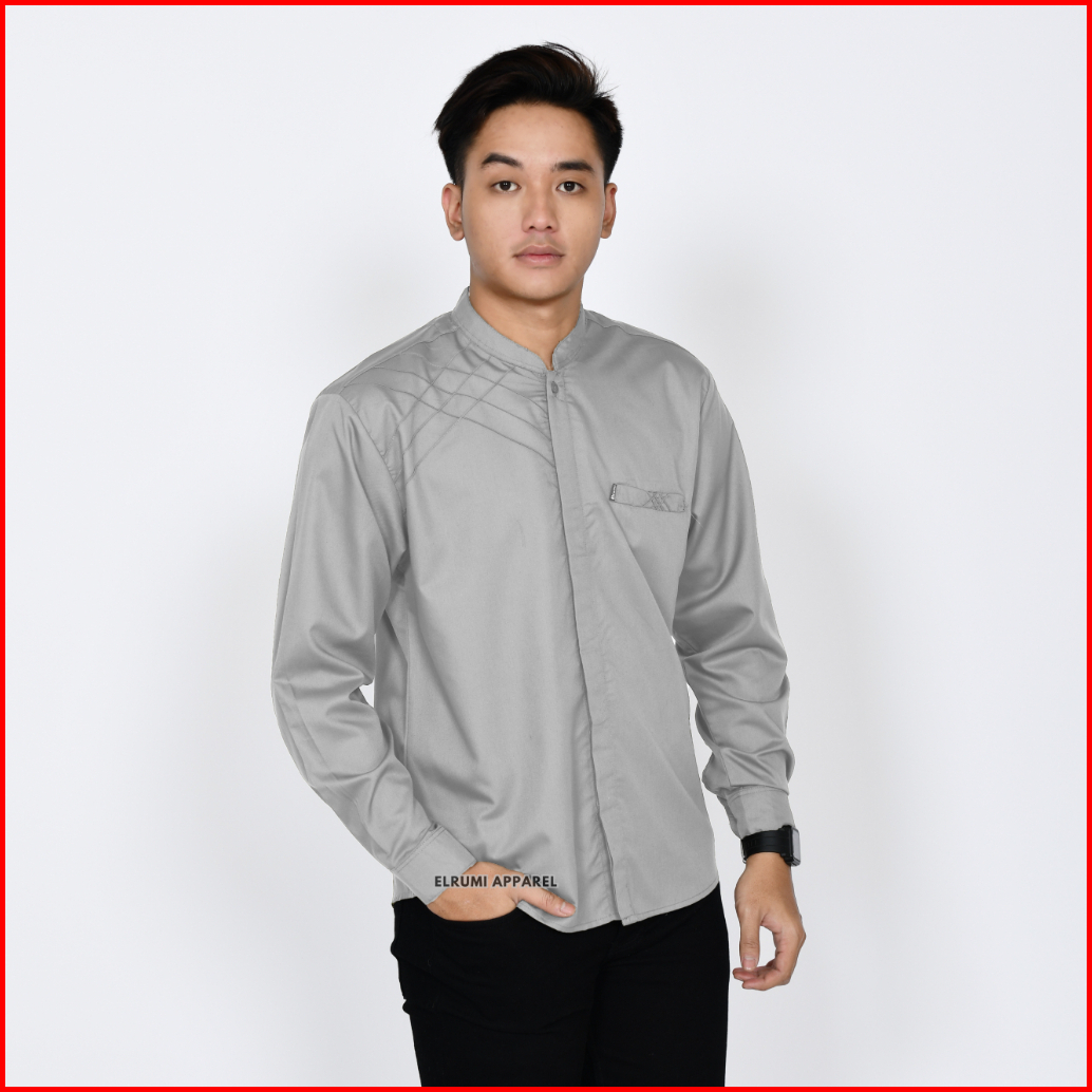 Baju Koko Pria Dewasa Lengan Panjang Warna Olive Motif Signature Original Elrumi